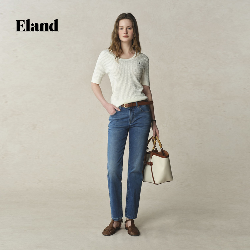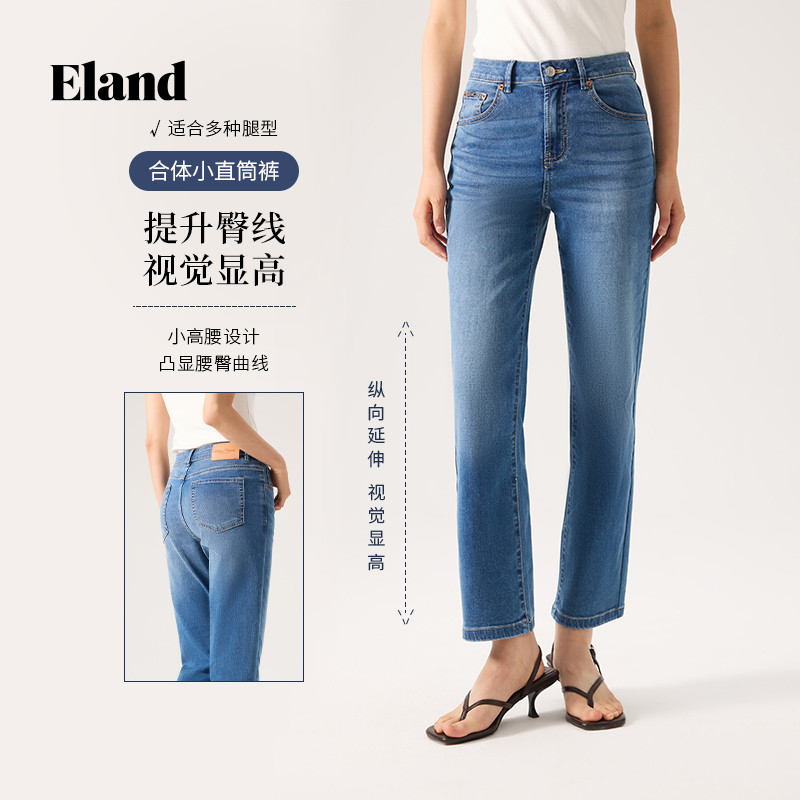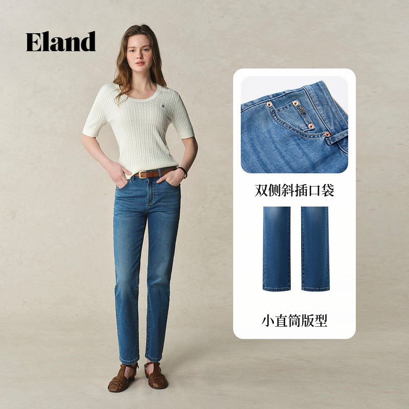 【78%棉】Eland牛仔裤女通勤微弹修身九分裤2025夏季新款