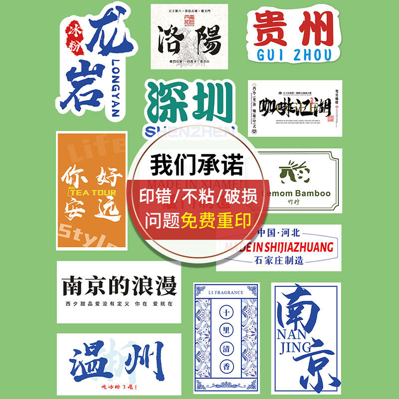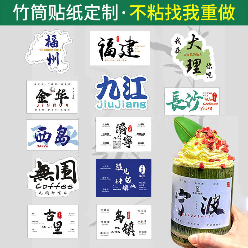 竹筒奶茶杯贴纸定制咖啡饮品店创意图片不干胶贴画设计外带竹桶甜品冰淇淋城市地名标贴冷饮ins风标签纸打印
