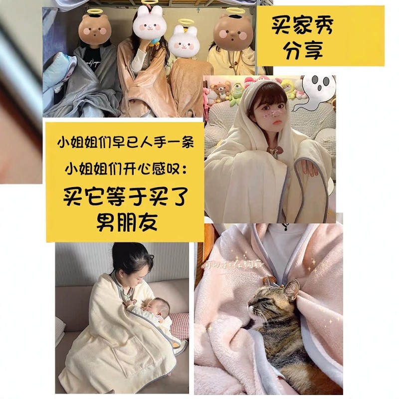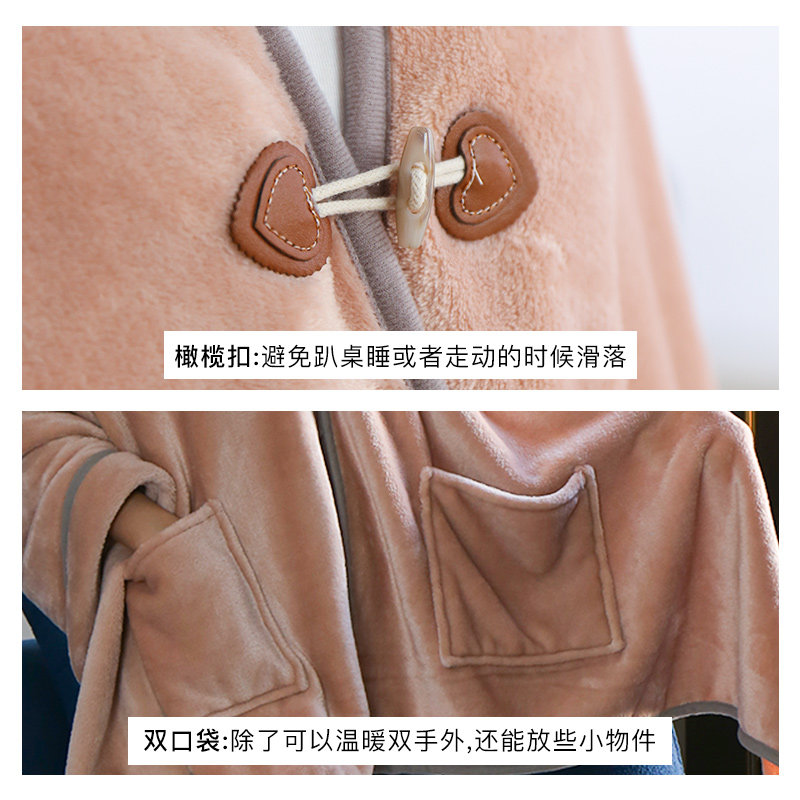 蜗在家办公室工位午睡毯子 月子披肩斗篷午休小毛毯 秋冬沙发盖毯