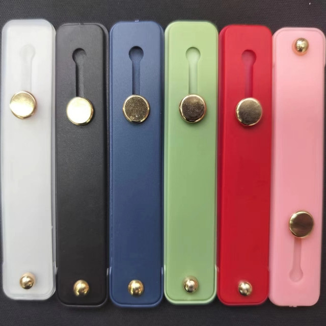 手机推拉式指环扣支架纯色伸缩粘贴式多功能硅胶腕带支架防摔户外
