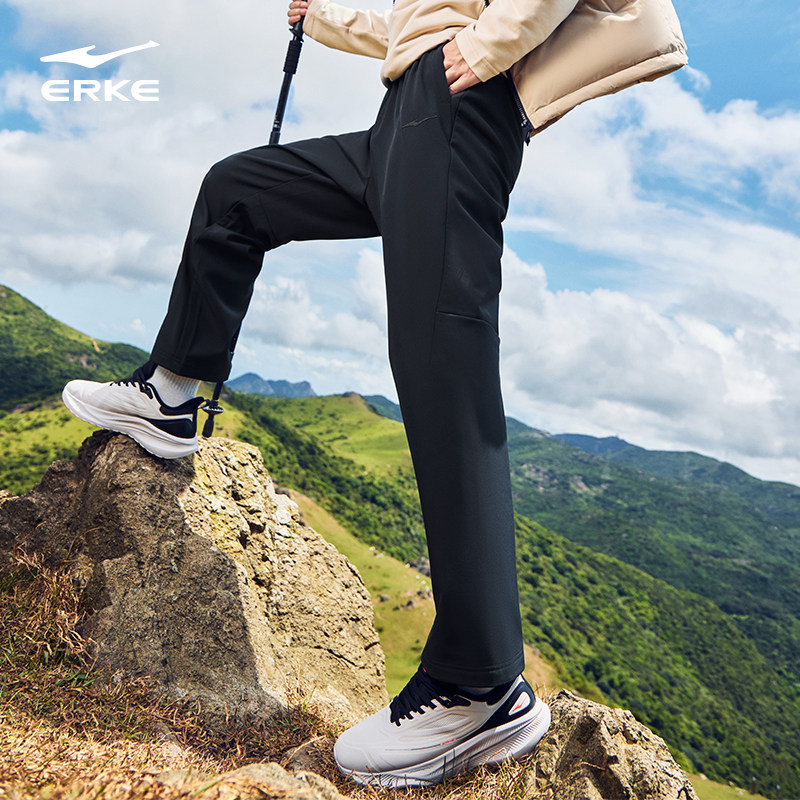 鸿星尔克加厚运动裤男冬季新款男士户外防泼水防风软壳裤直筒裤子