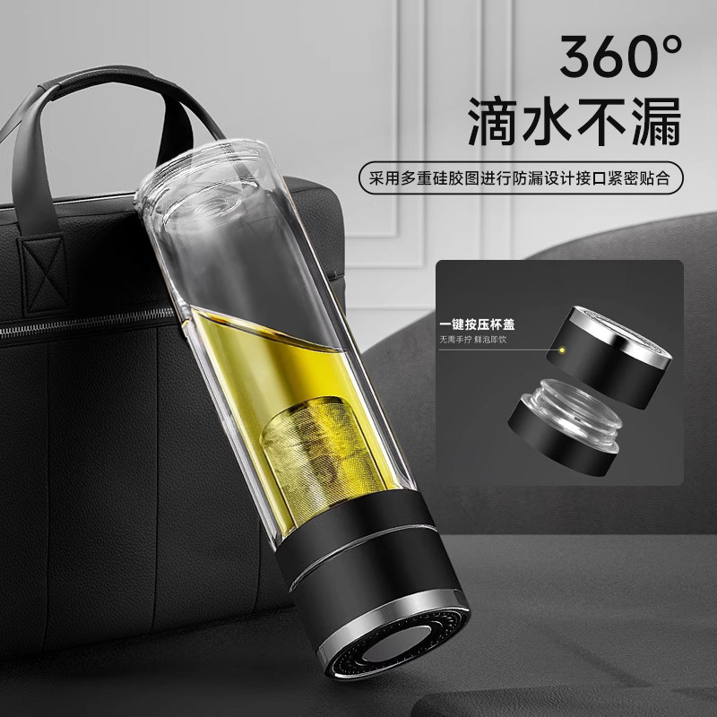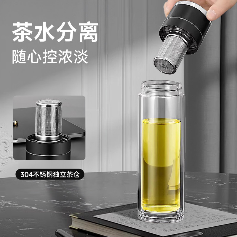 宝选磁吸茶水分离杯双层防烫玻璃水杯新款男士泡茶专用磁弹泡茶杯