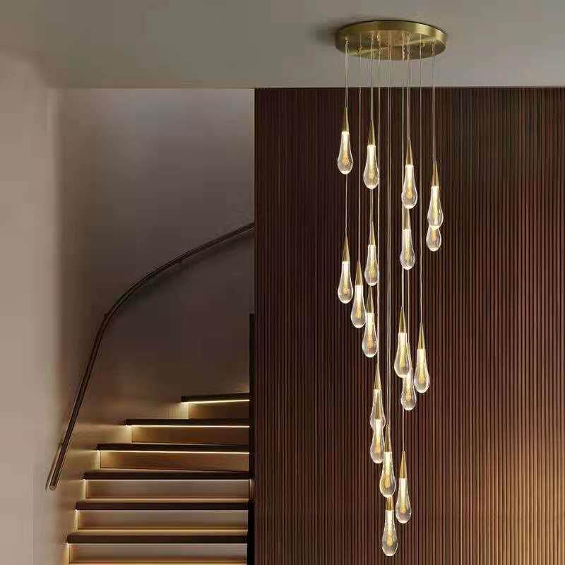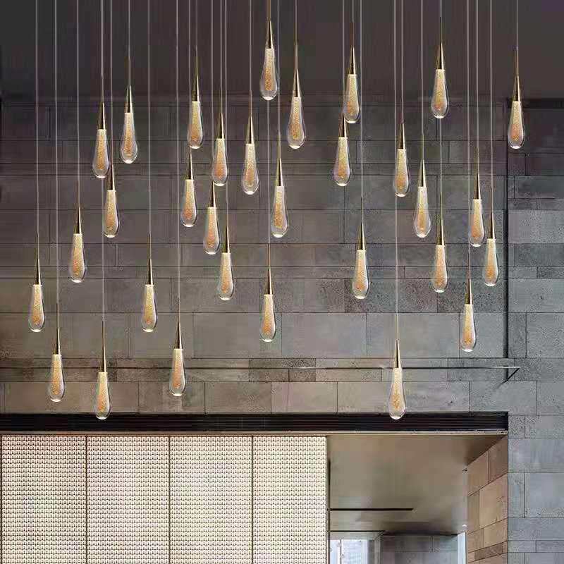 后现代简约餐厅旋转梯水晶楼梯灯饰创意个性酒店大堂展厅水滴吊灯