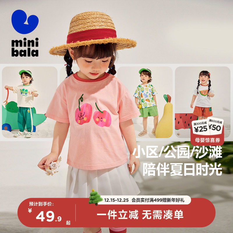 迷你巴拉男童女童短袖T恤夏季宝宝水果薄纯棉T恤儿童短袖婴童上衣