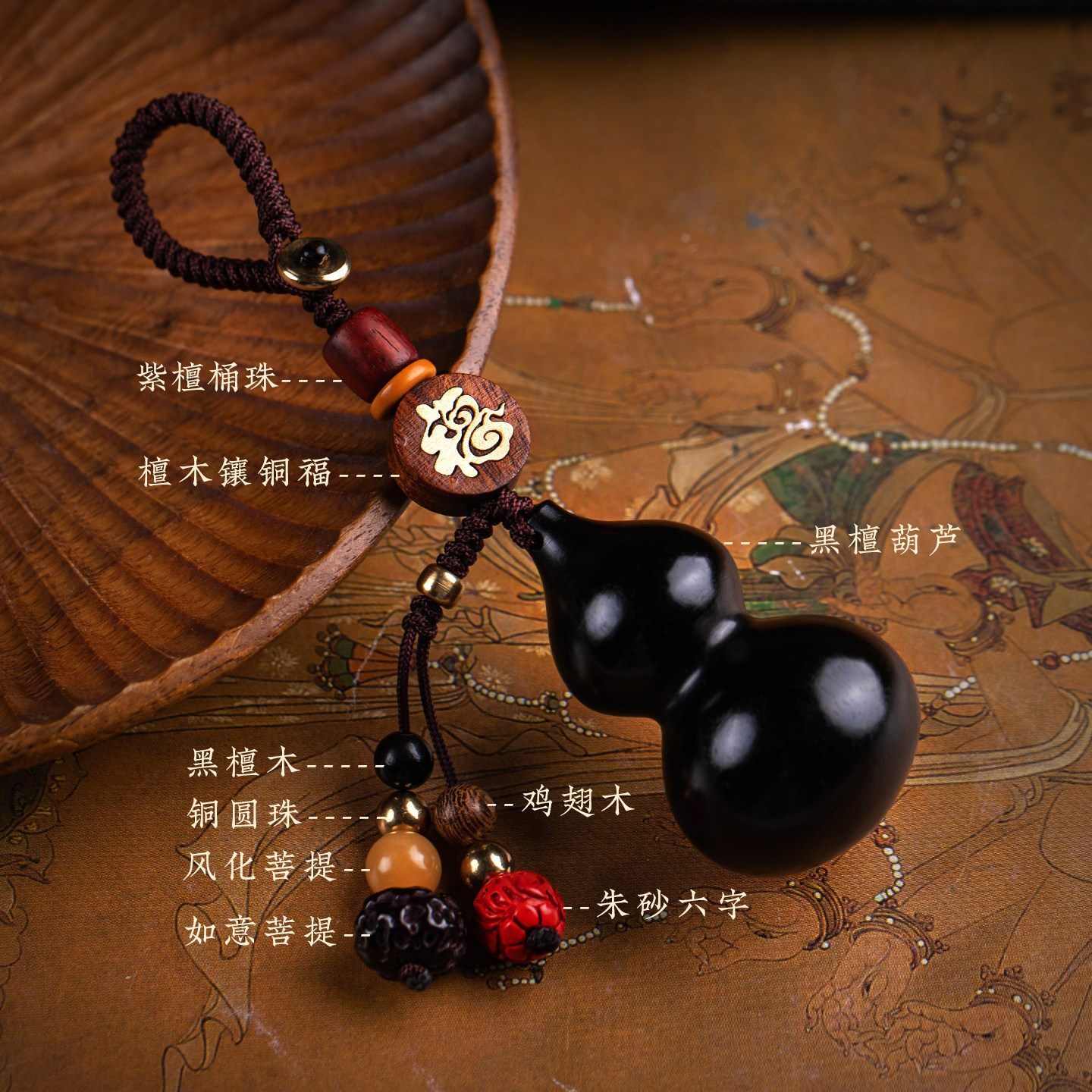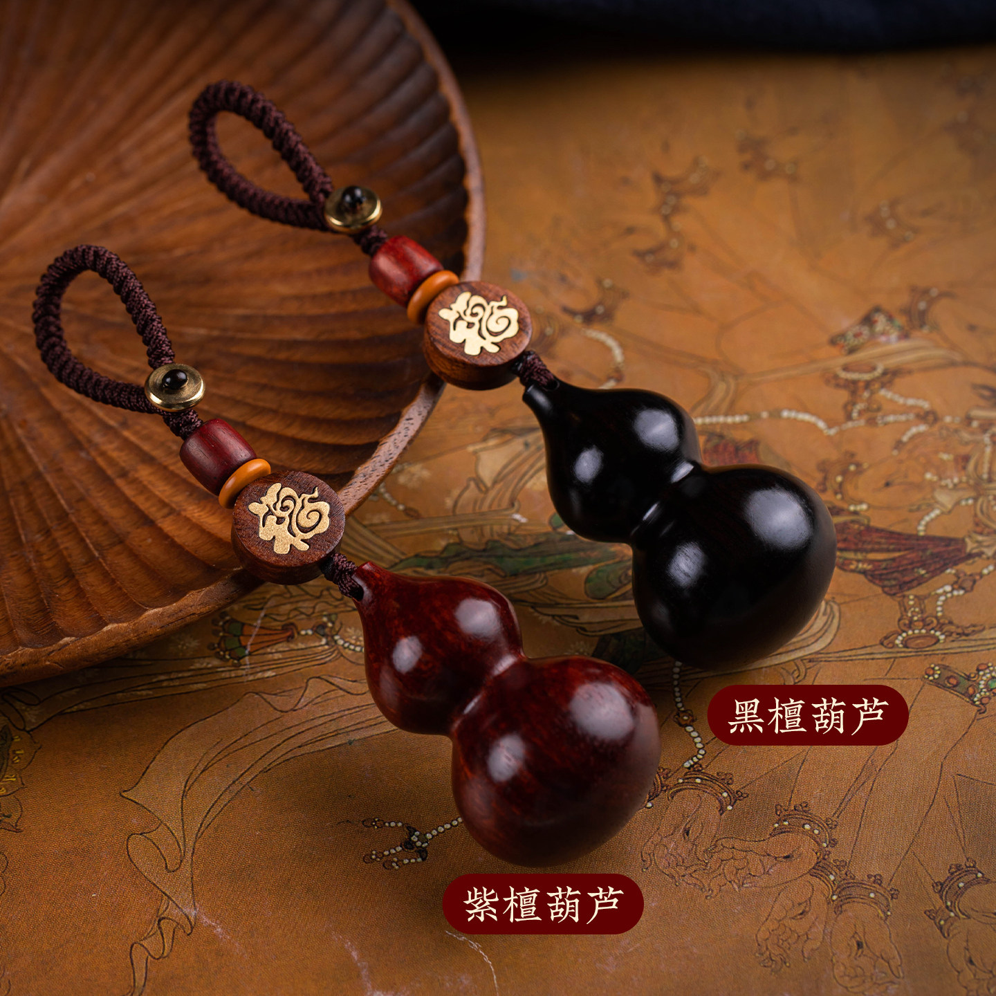 天然檀木汽车钥匙扣黑檀紫檀福禄葫芦高档背包书包钥匙挂件刻字男