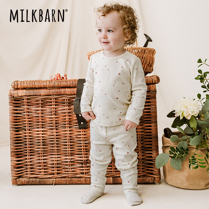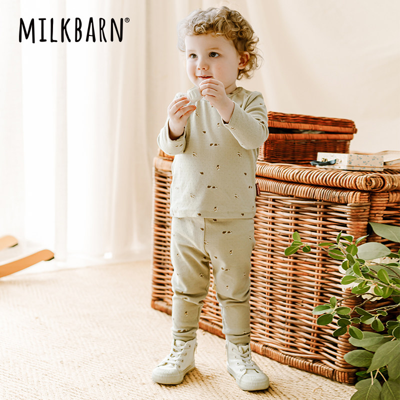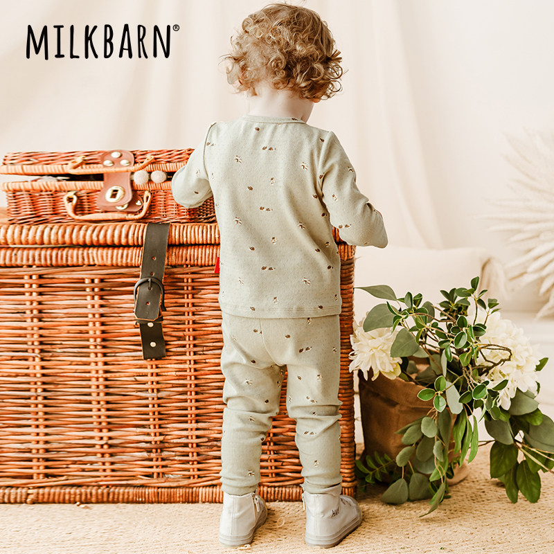 Milkbarn秋冬新品儿童秋衣秋裤宝宝内衣套装男女童家居服睡衣