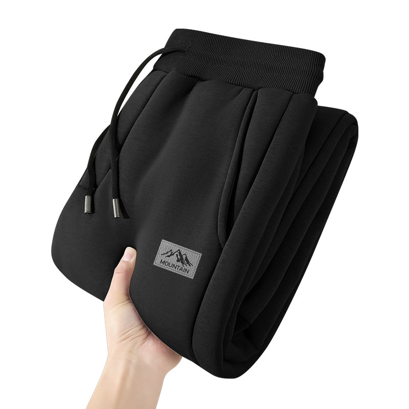 GV真维斯加绒卫裤男冬季黑色宽松休闲裤男款加厚羊羔绒保暖裤子A