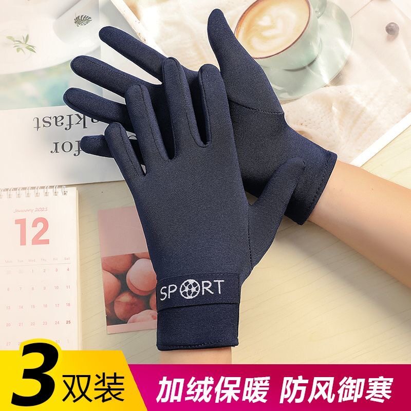 秋冬保暖手套女款加绒加厚广场跳舞防风防寒骑开车休闲棉手套