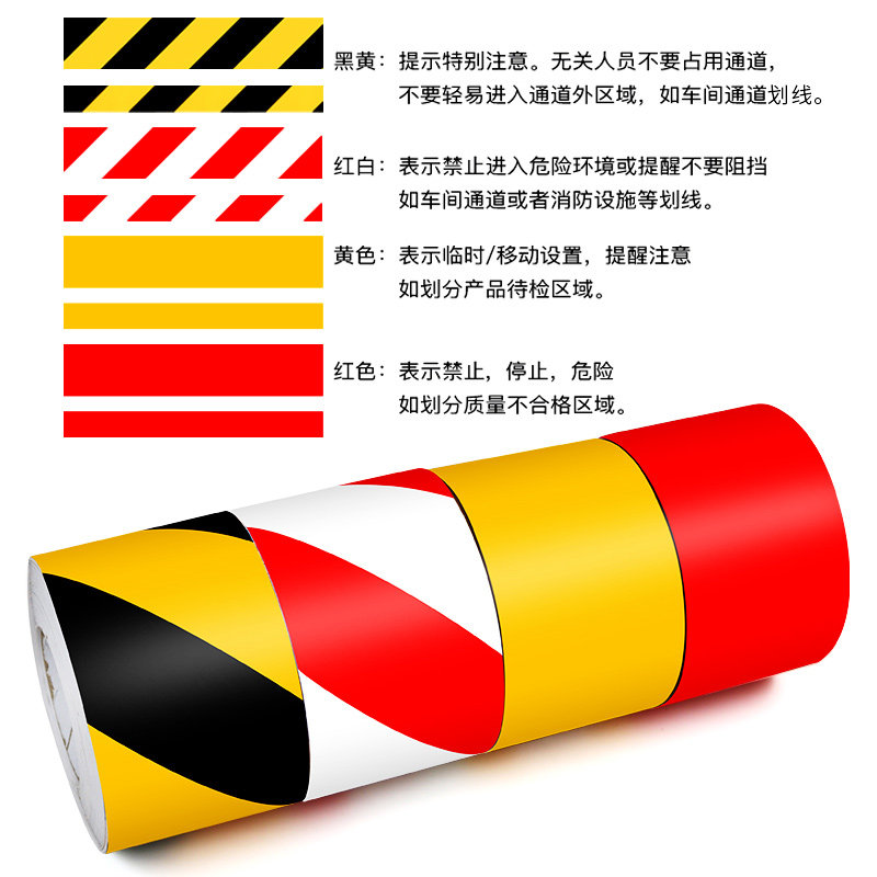 PVC警示胶带贴纸地贴车间地胶黄黑加厚反光膜地面区域划分木地板大理石马路楼梯防撞斑马线地板划线警示标识