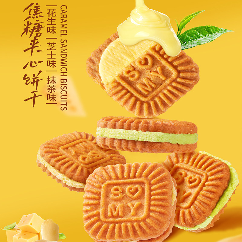整箱300包 焦糖夹心饼干早餐单独小包装解馋零食休闲小吃食品批发