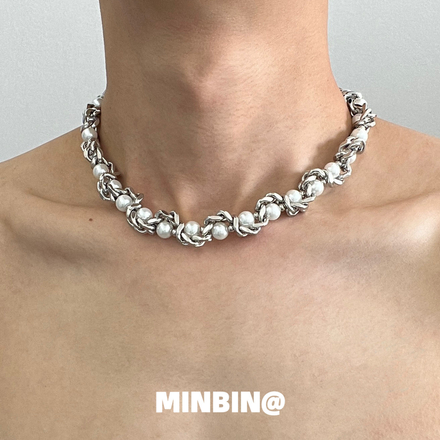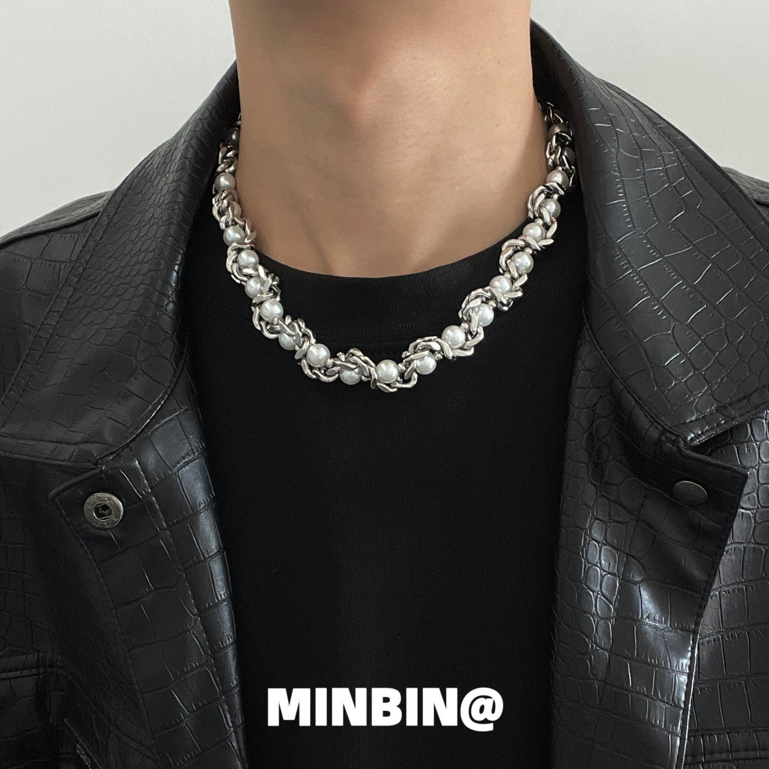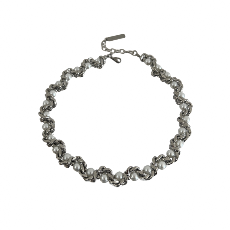 古巴链珍珠设计感颈链 男女通用嘻哈风格项链 多层设计钛钢锁骨链