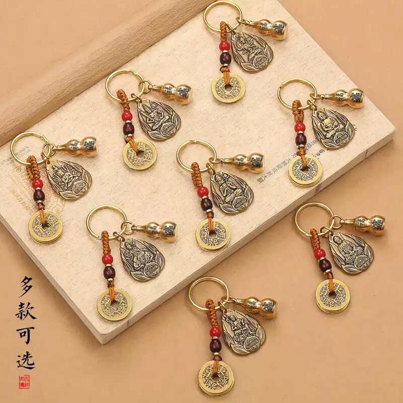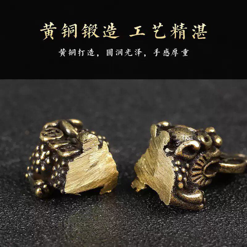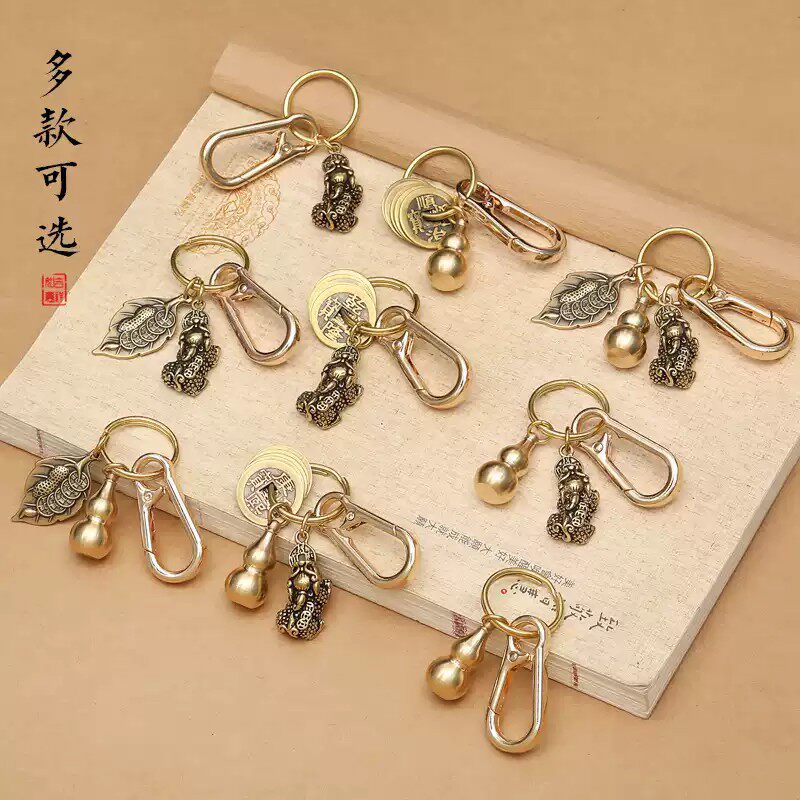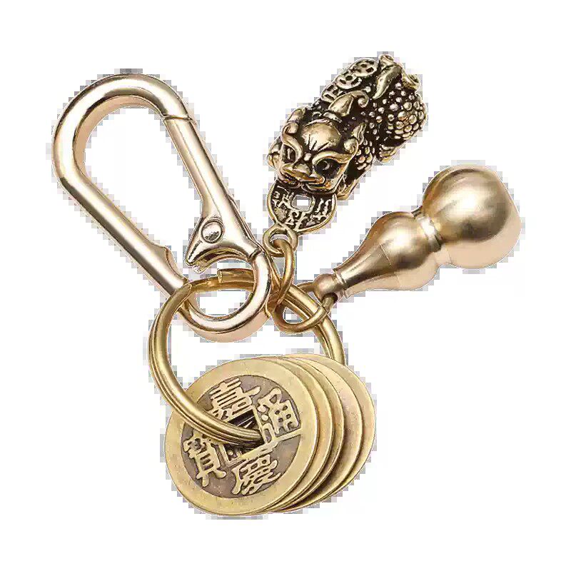 纯黄铜貔貅葫芦十二生肖钥匙扣汽车挂件朱砂五帝钱男女转运吊坠饰