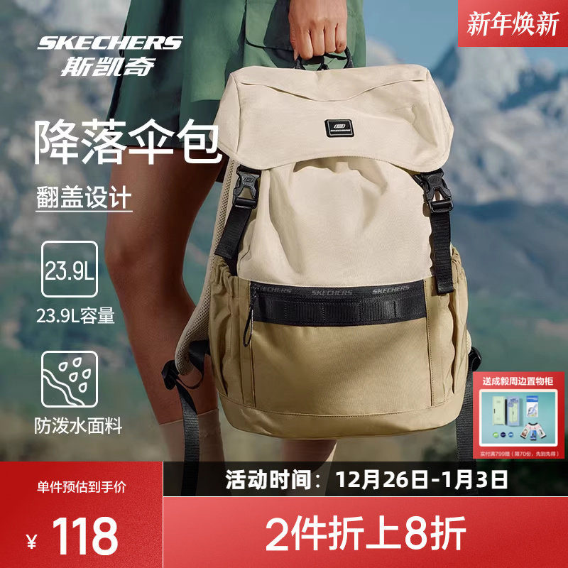 斯凯奇双肩背包男女同款降落伞包年通勤电脑包大容量户外包书包