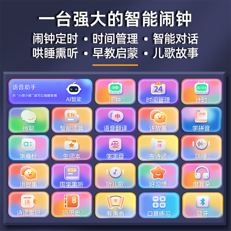 AI语音智能闹钟小学生专用起床神器2025新款实用儿童电子时钟男孩女孩早教机英语学习机故事玩具多功能家自律