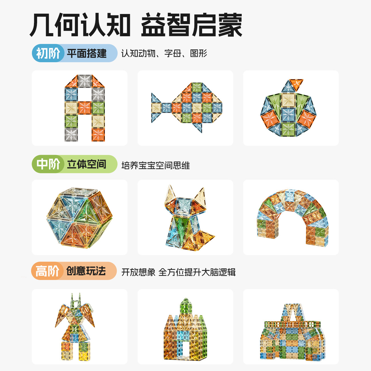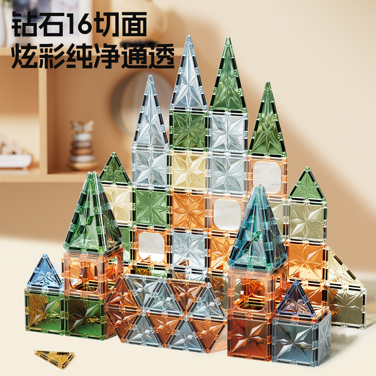 钻面彩窗磁力片儿童益智玩具拼装图积木男女孩强磁铁宝宝圣诞礼物