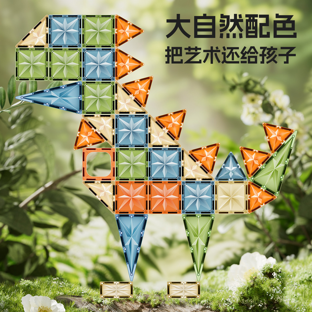 彩窗磁力片儿童益智玩具积木磁力拼图强磁贴男女孩圣诞礼物大自然