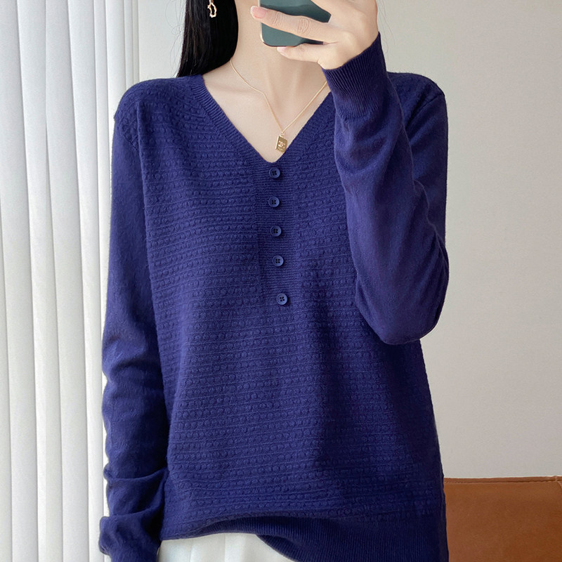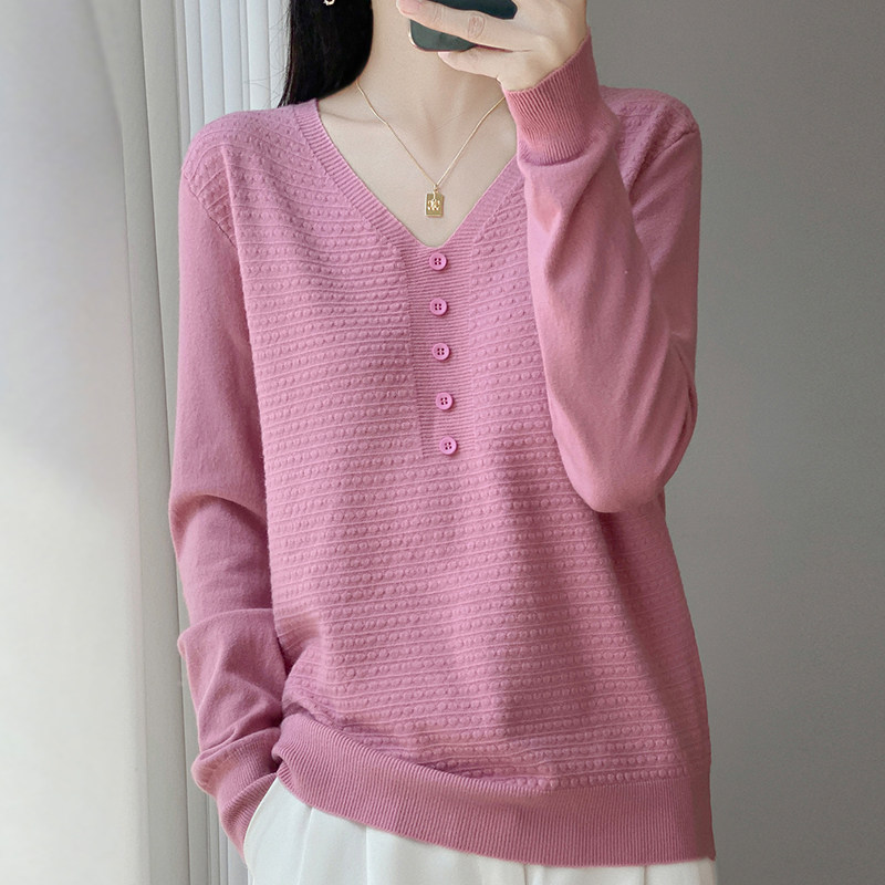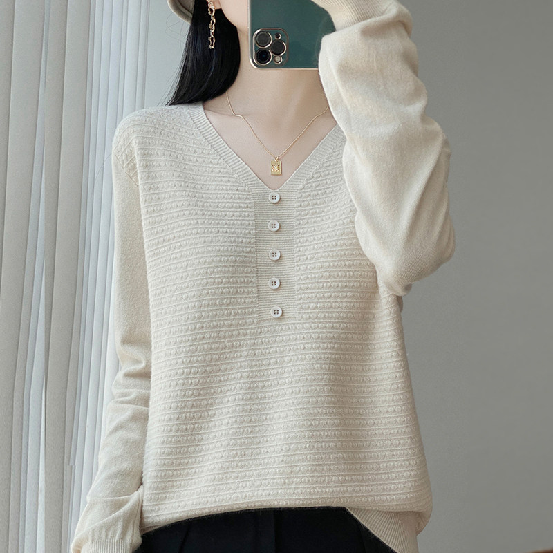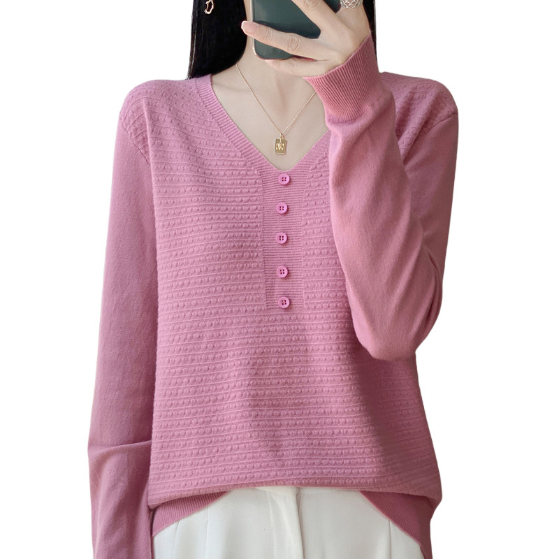 撤标撤柜(A)V领鼓点针织打底衫女春秋洋气上衣大码女装秋冬毛衣