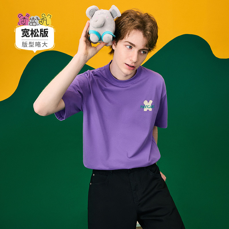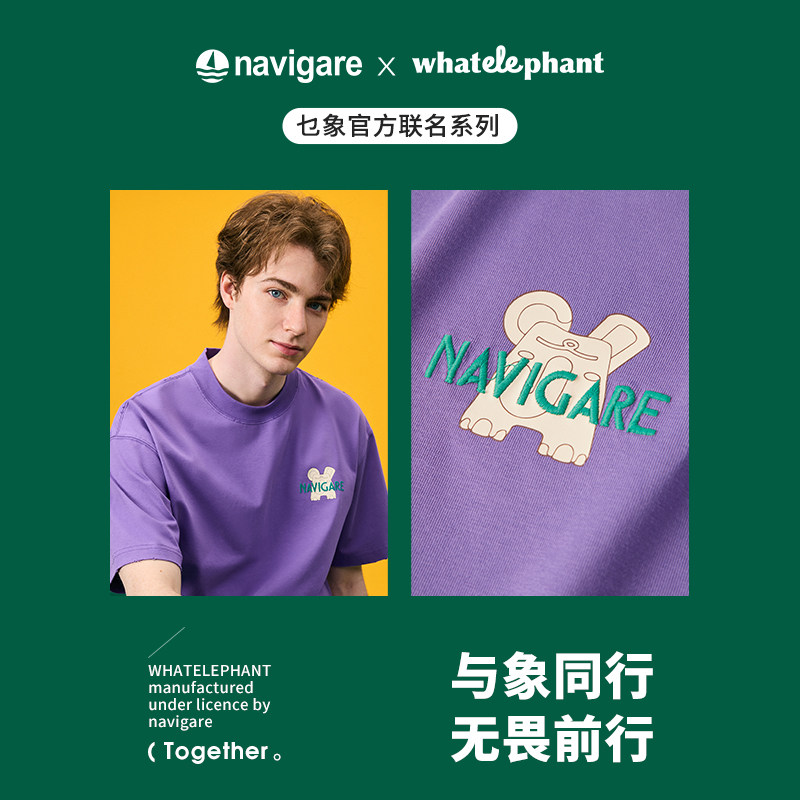 [乜象联名款]Navigare小帆船短袖T恤男女同款宽松圆领套头体恤衫