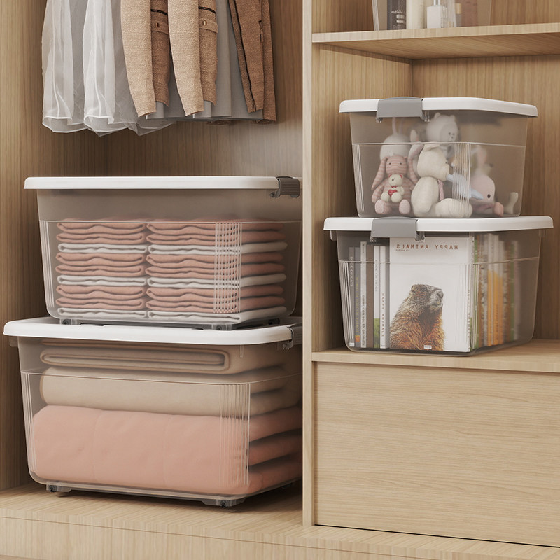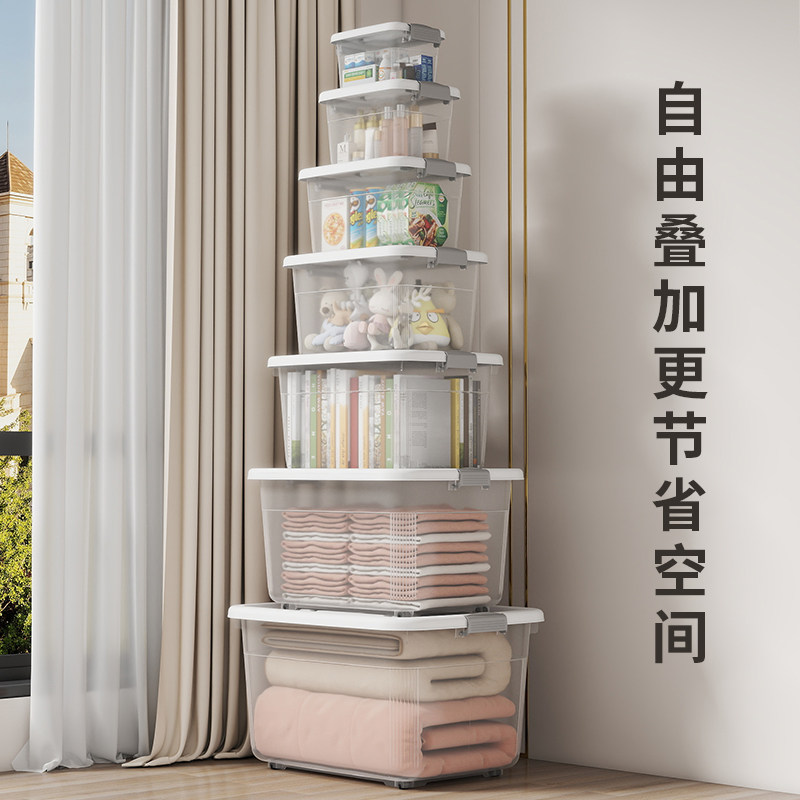 透明收纳箱家用塑料整理箱衣服大容量储物箱子零食玩具收纳盒带盖