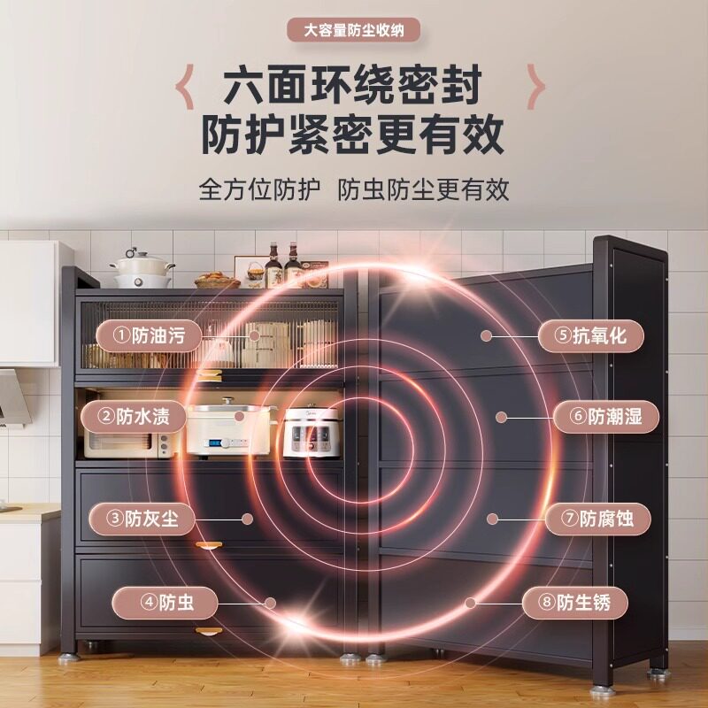 厨房置物架落地多层餐边柜收纳柜微波炉带门多功能橱柜防尘储物柜