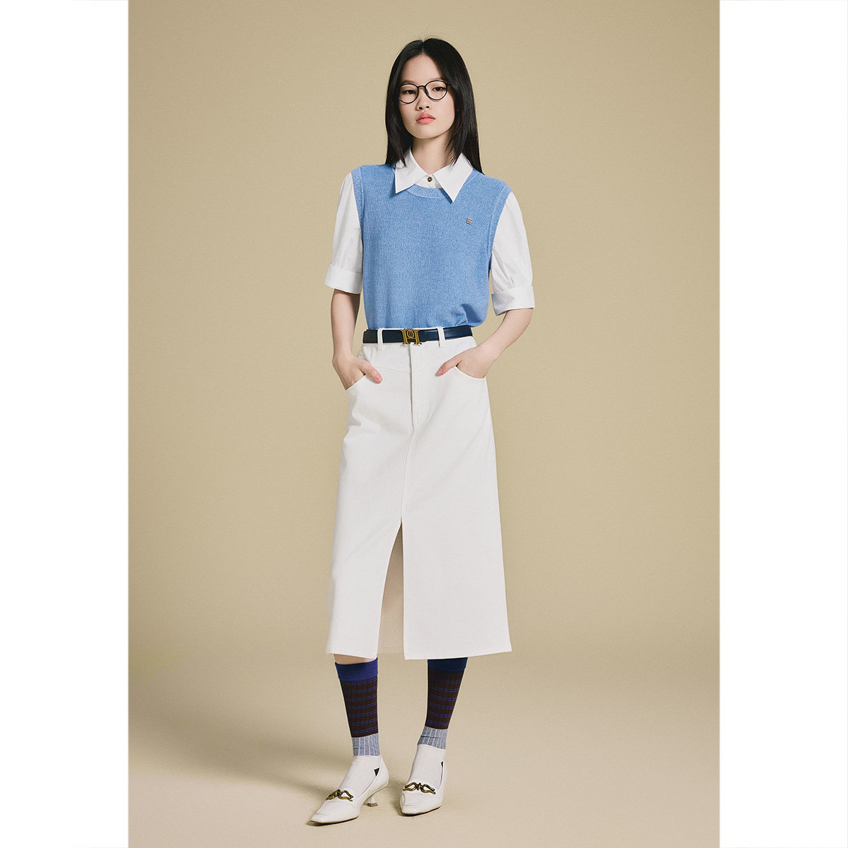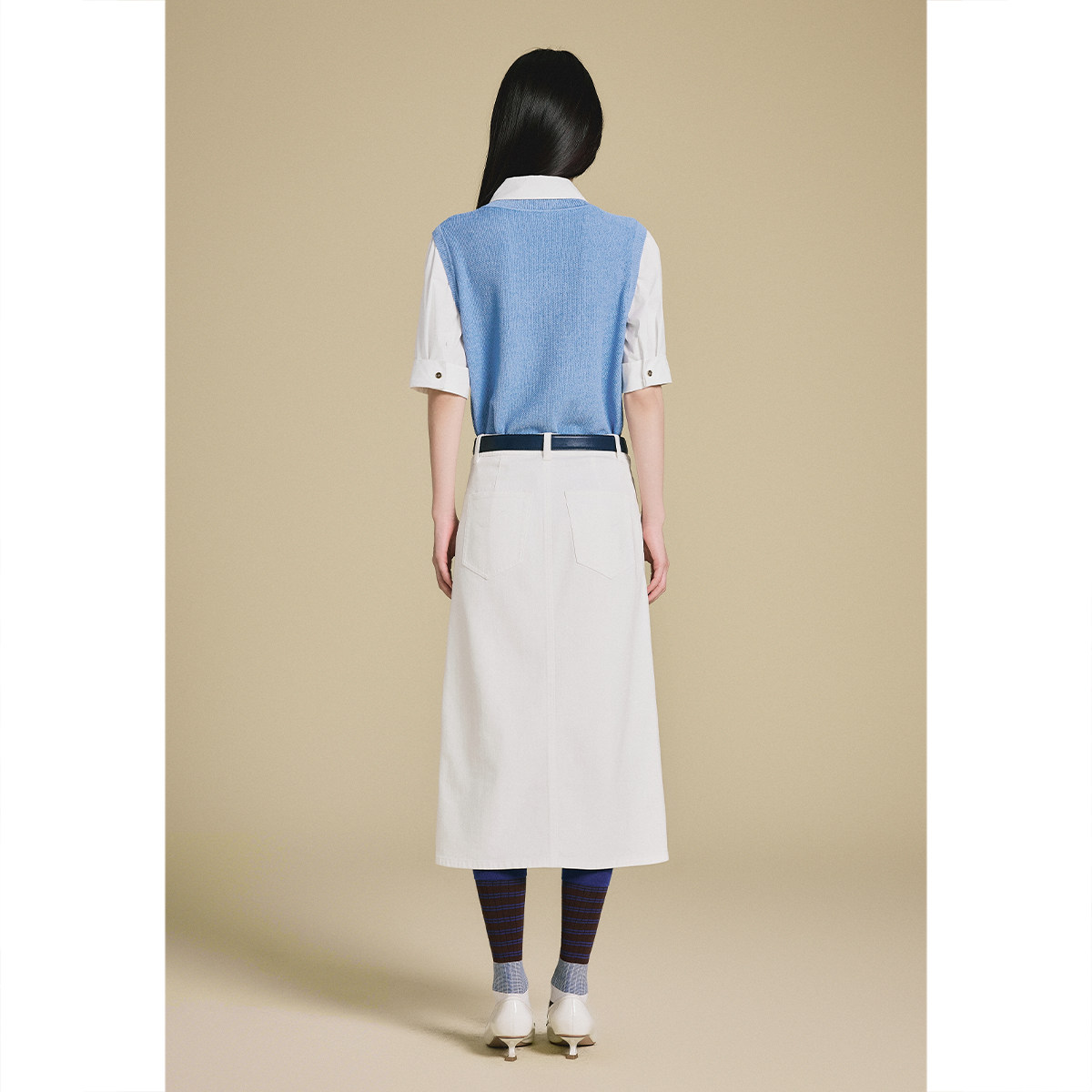 PSALTER诗篇通勤白色前开叉中长直筒裙半身裙2025夏款
