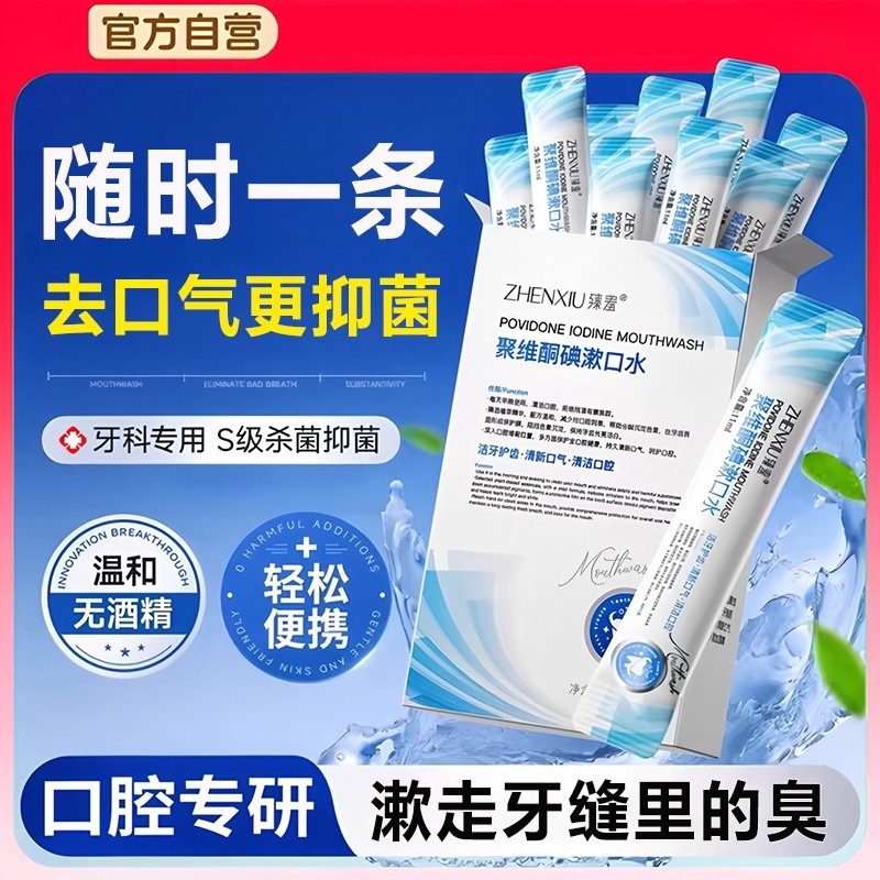 碘伏聚维酮碘漱口水便携式一次性小包装抑杀菌除口臭持久留香条装