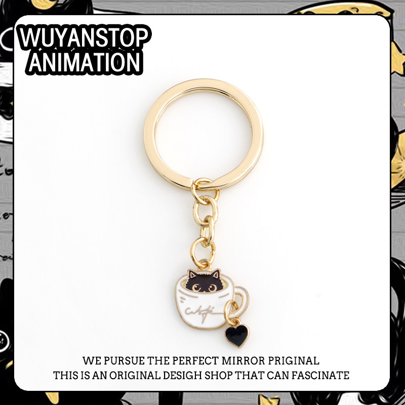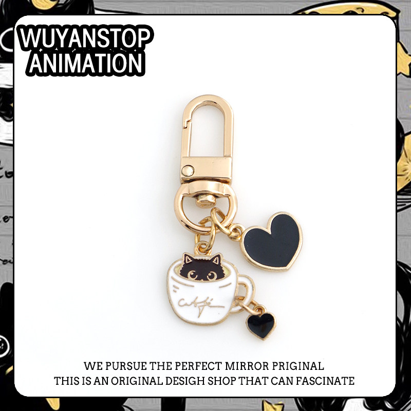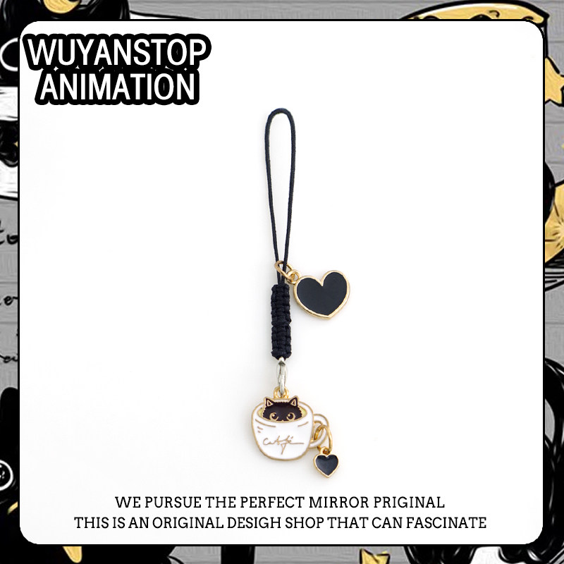 可爱茶杯猫咪手机挂件卡通包包U盘Airpods耳机保护套挂饰绳钥匙圈