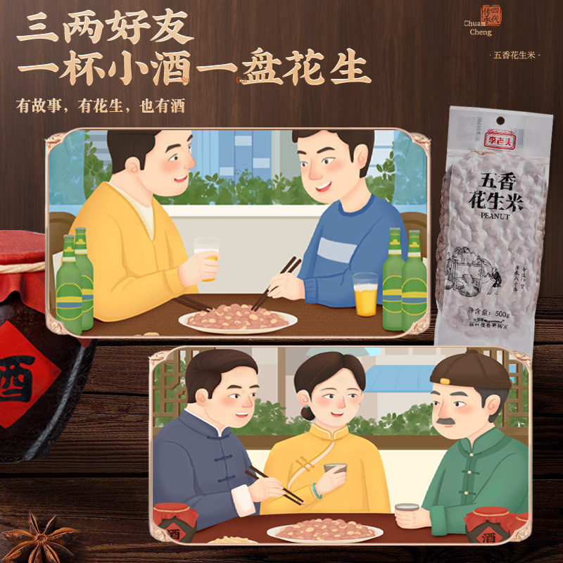 李老头五香花生米1斤椒盐袋装熟花生米下酒菜零食麻辣咸味烘烤