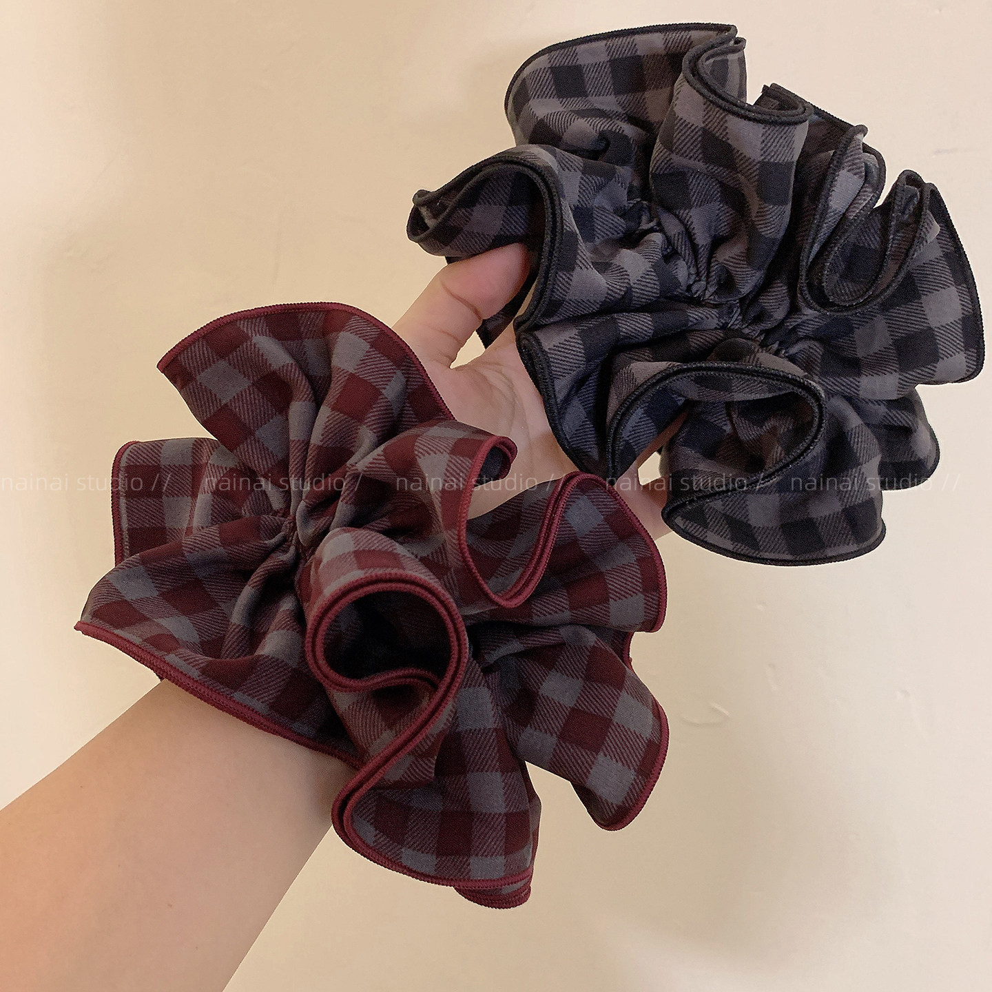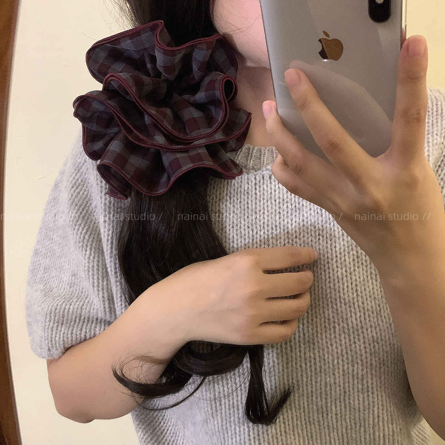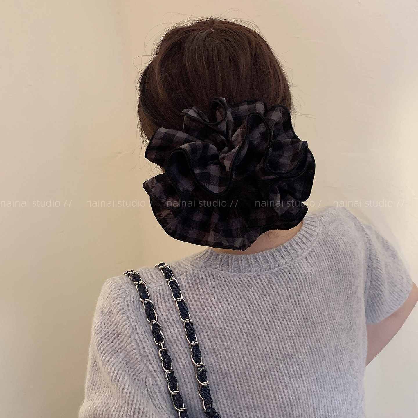 可露丽风~格子超大号高级感丸子头发绳头绳格纹马尾扎头发头花女