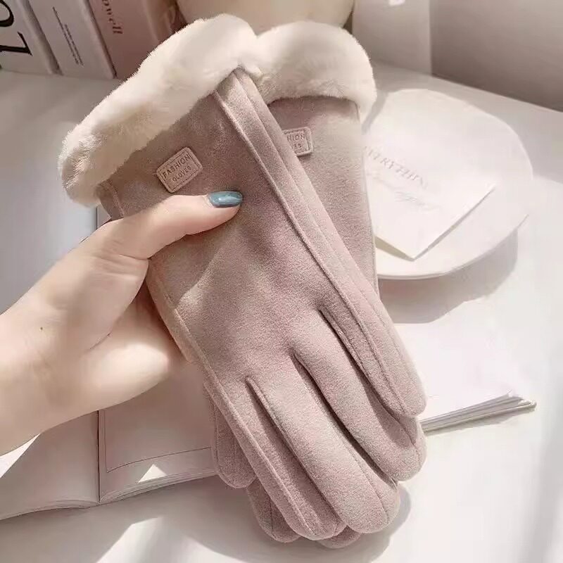 保暖手套冬天加绒加厚可爱麂皮绒女士骑行防寒骑车防风触屏冬季女