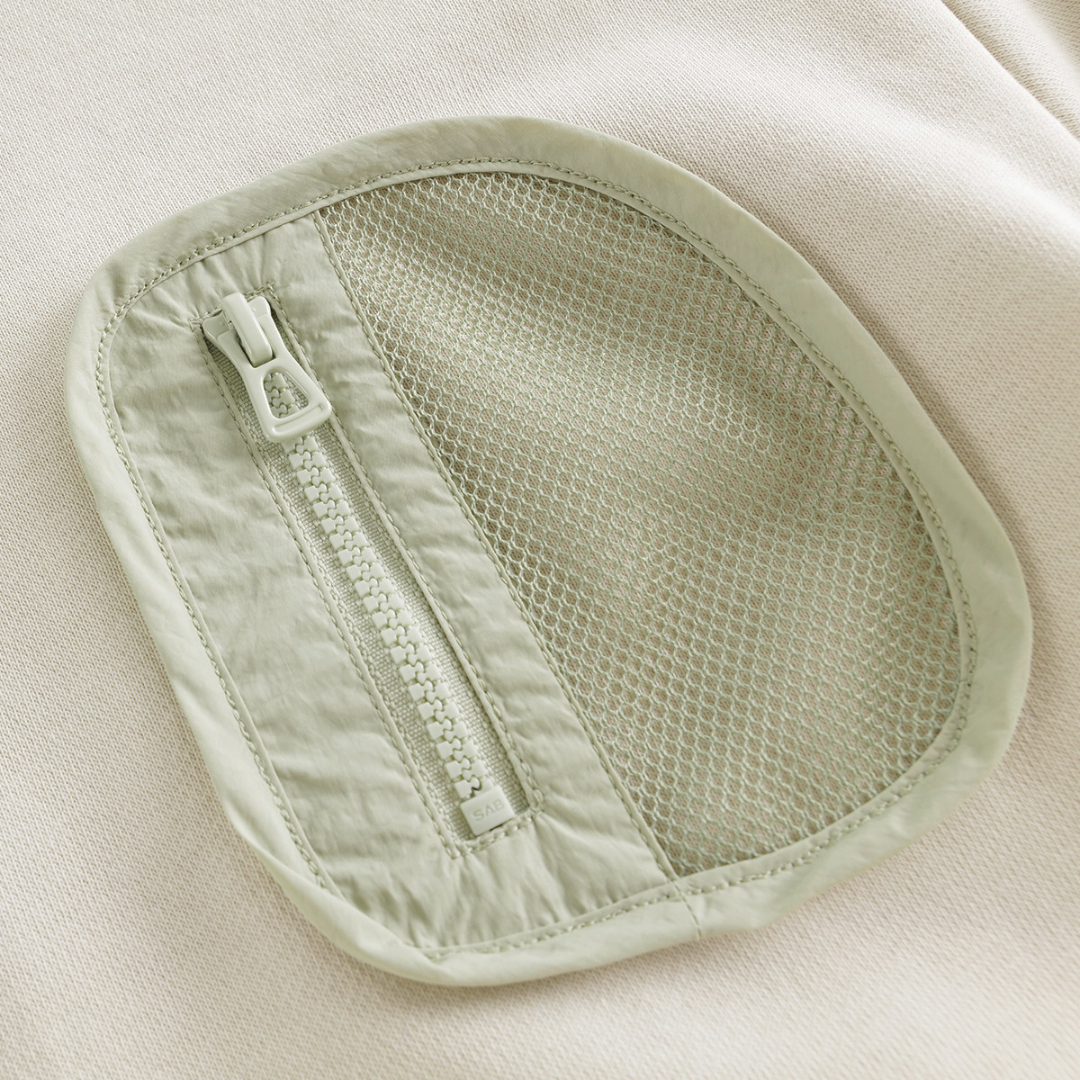 宽松插肩版型,山系拼色设计,网眼拉链口袋