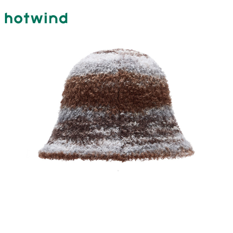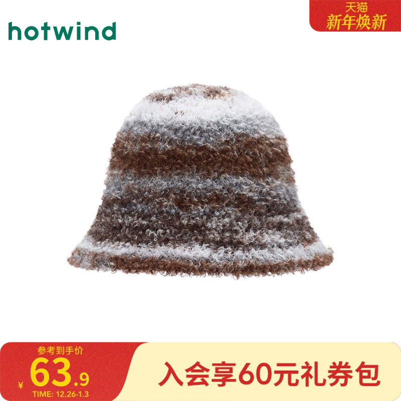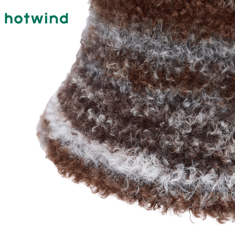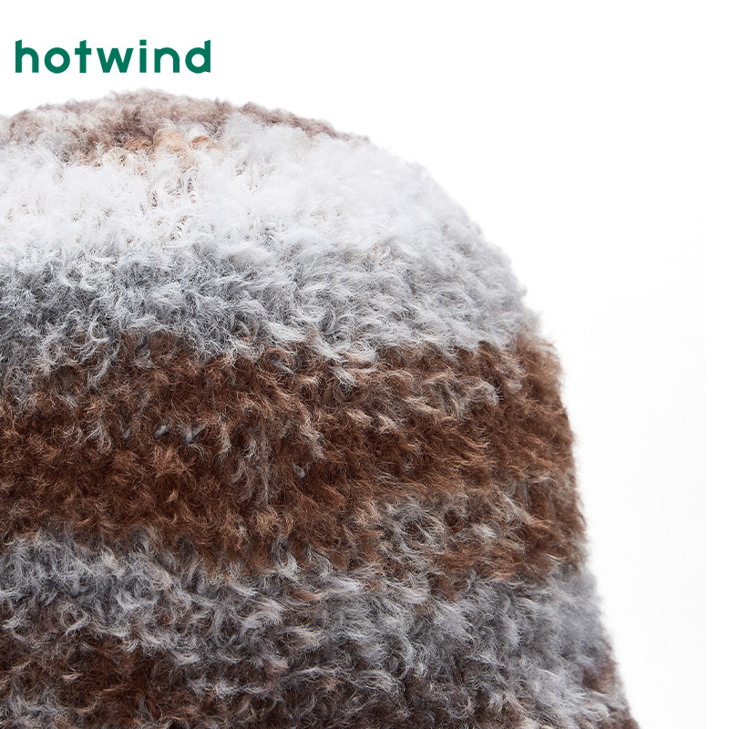 热风女士帽子2025年冬季新款段染时尚盆帽保暖潮流渔夫帽帽子配件