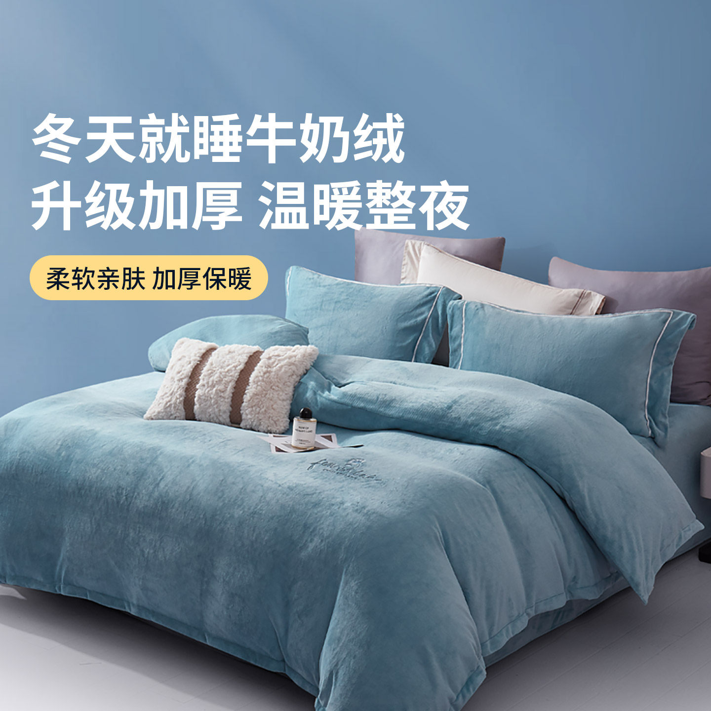 富丽真金牛奶绒四件套撸猫感法兰绒珊瑚绒冬季保暖加绒床单被套