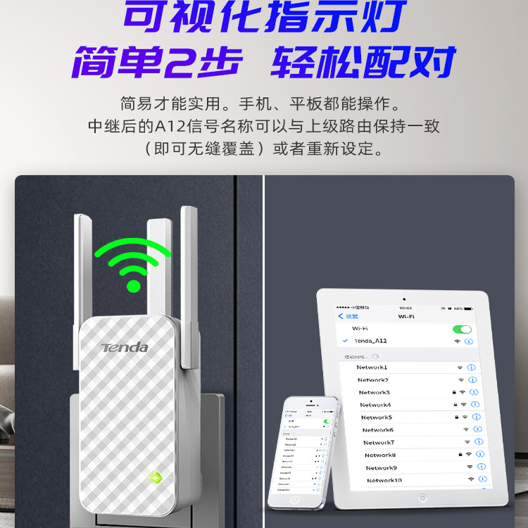 【官方自营】腾达A12 wifi信号增强器扩大器路由器中继器家用无线网络接收器扩展大功率wi-fi放大器加强器