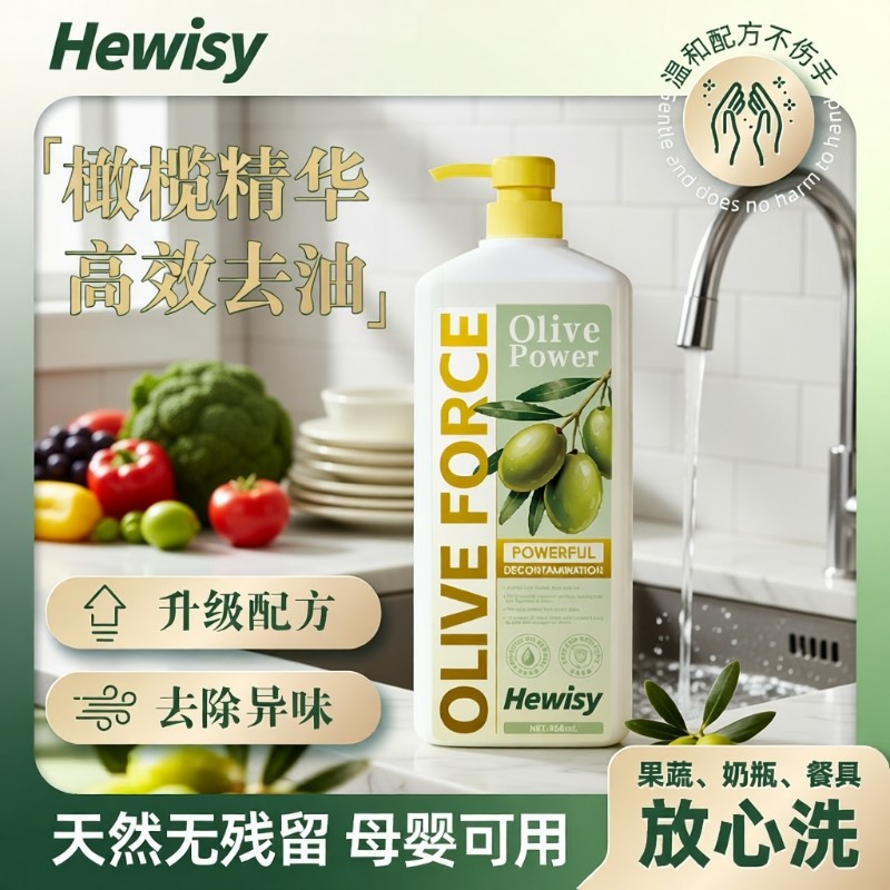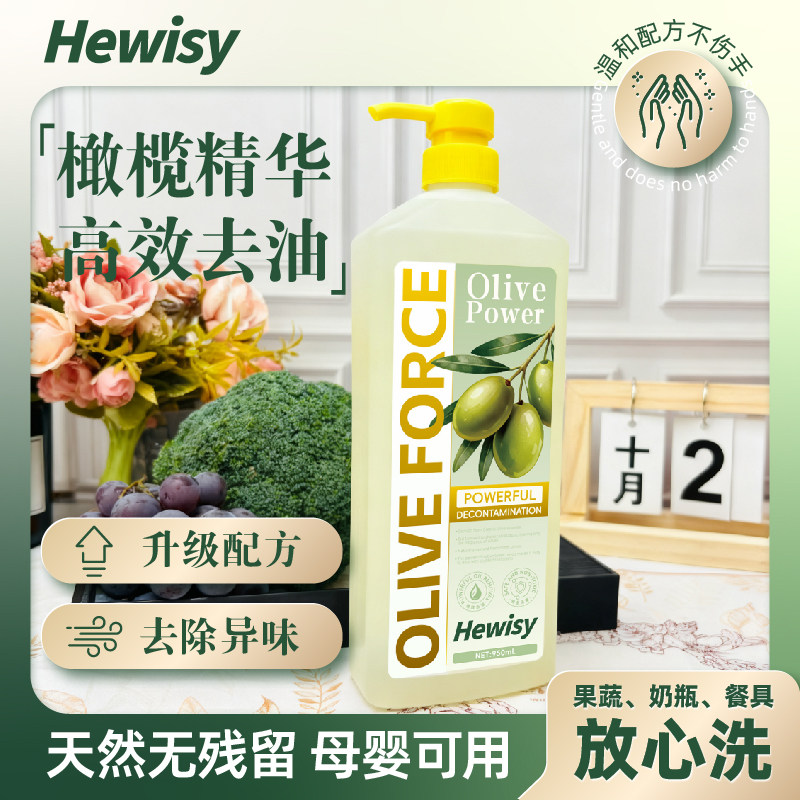 Hewisy橄榄油成分强效溶油快速去油去污天然洁净健康护手洗洁精