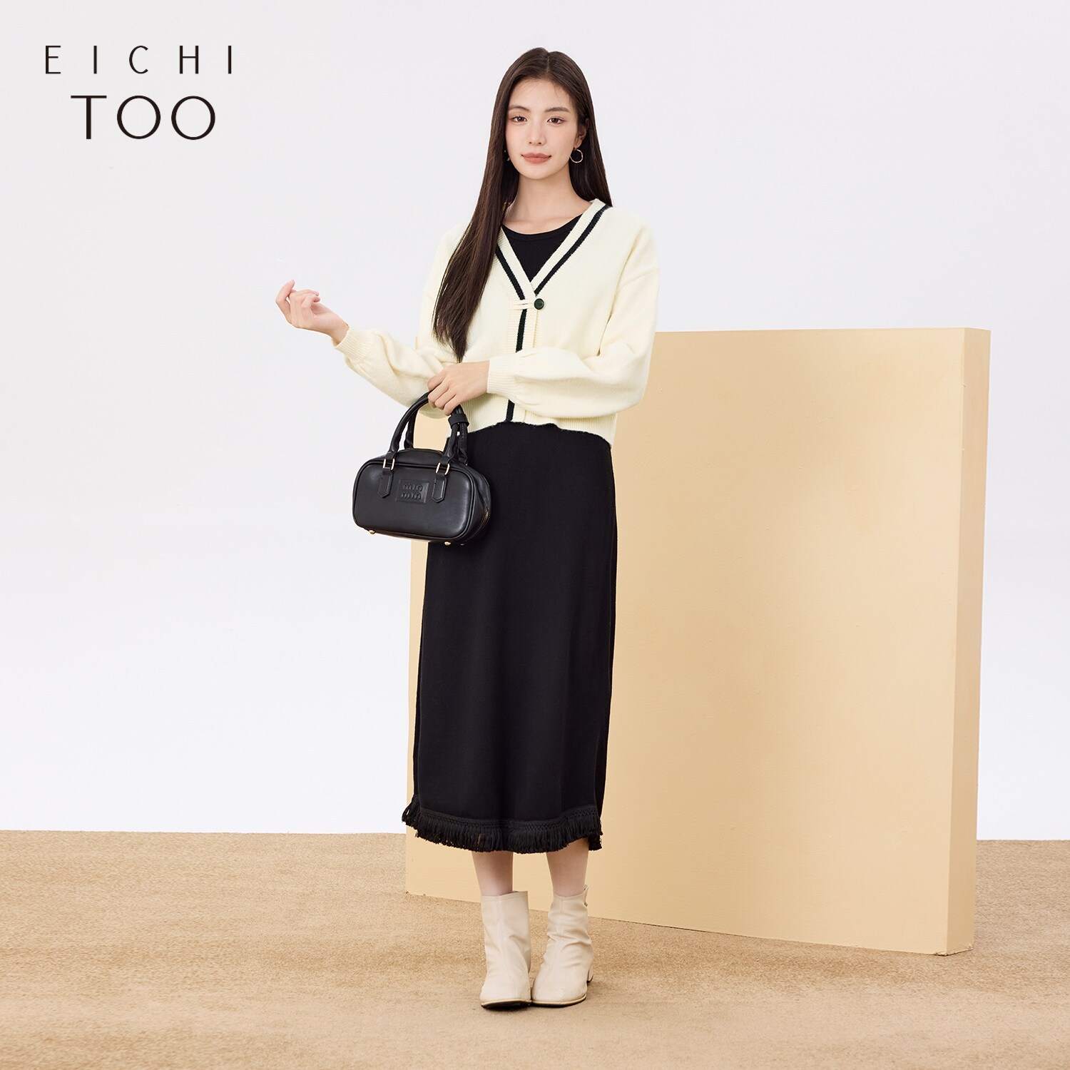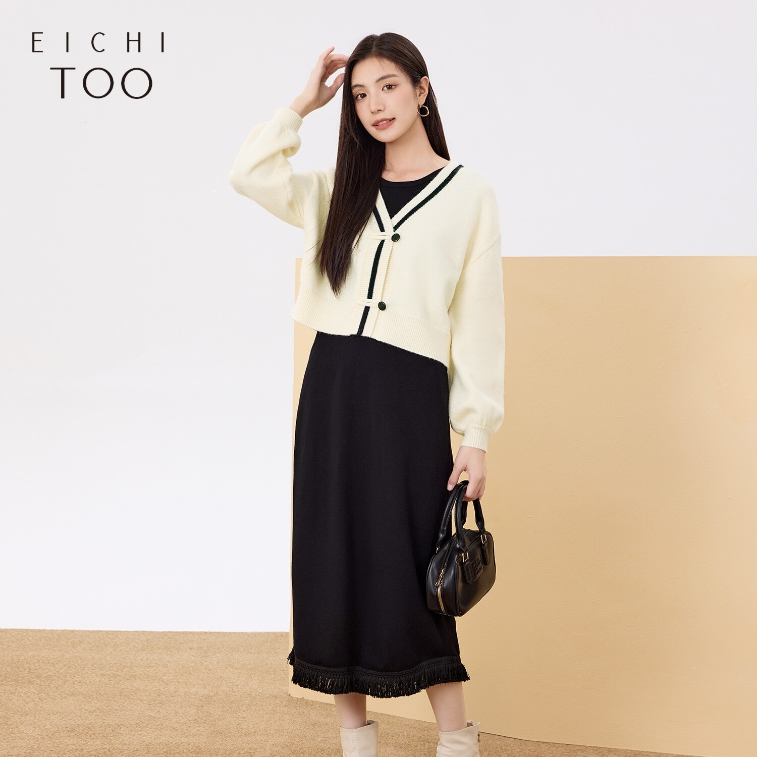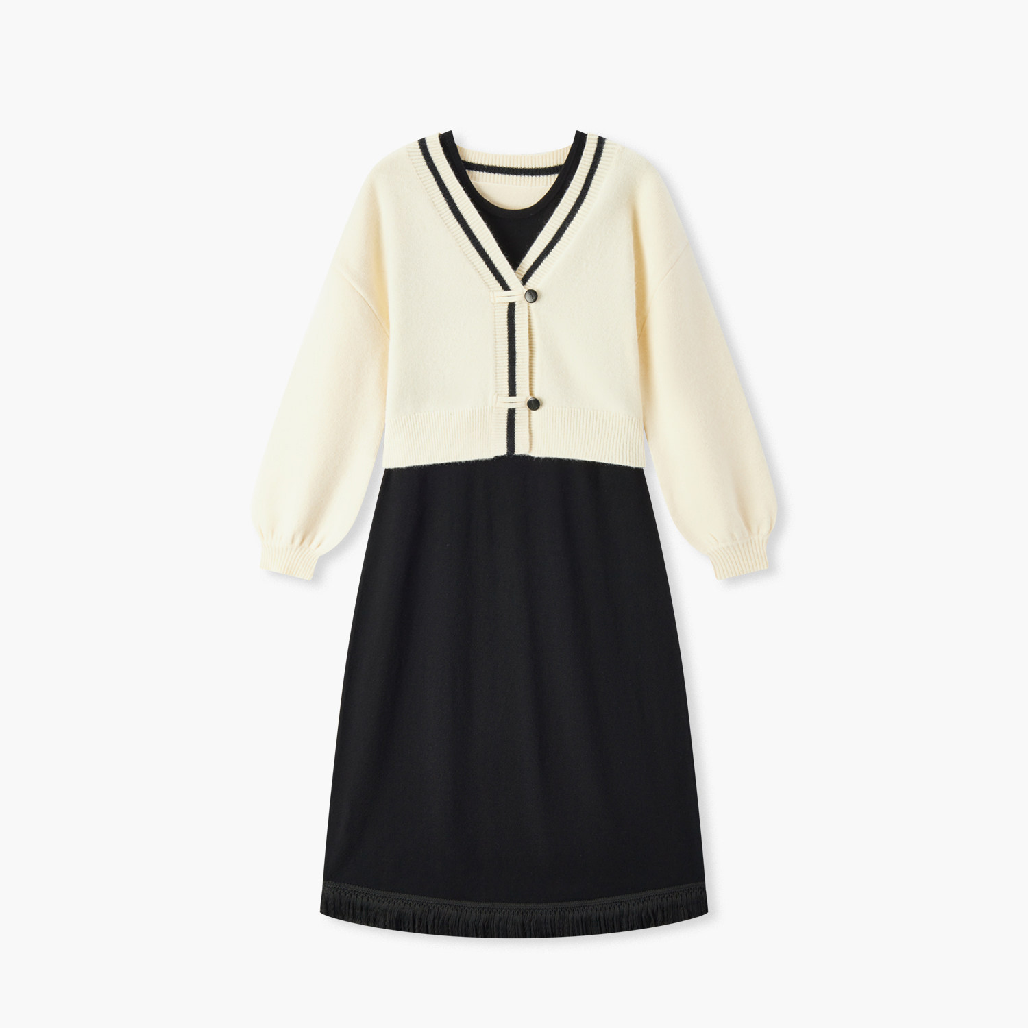 爱居兔新中式复古连衣裙套装春秋新款针织开衫两件套裙子