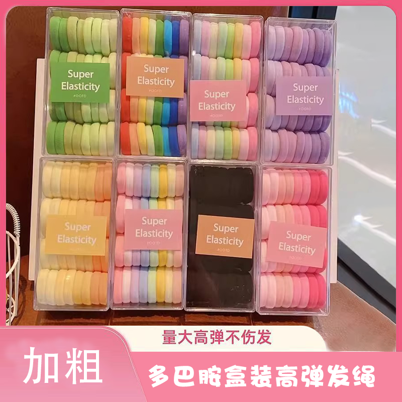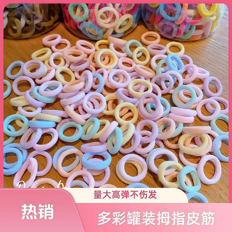 新款儿童多巴胺彩色加粗发绳高弹力耐用不伤发宝宝头绳罐装发圈
