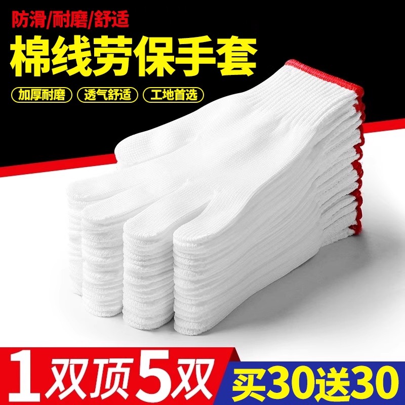 劳保手套耐磨透气工作防滑劳动薄款加厚棉线男人工地防割橡胶尼龙