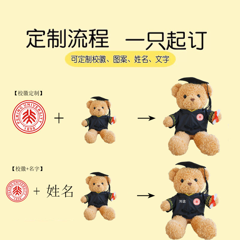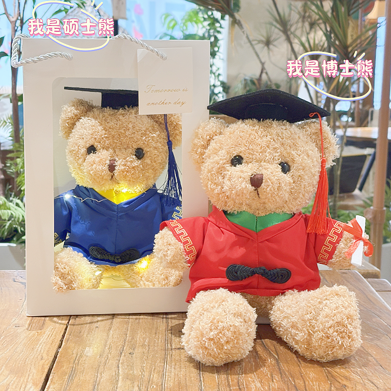 毕业礼物小熊玩偶博士熊毛绒玩具公仔娃娃硕士学校礼物礼品印LOGO