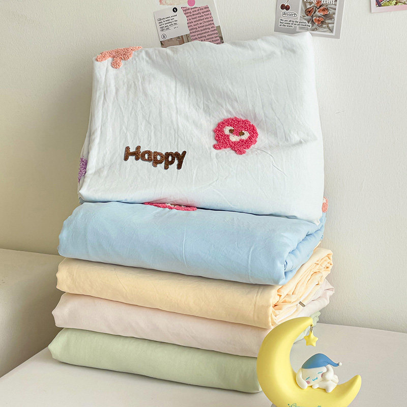 无印良品全棉四件套学生宿舍纯棉卡通儿童被套床单三件套床上用品