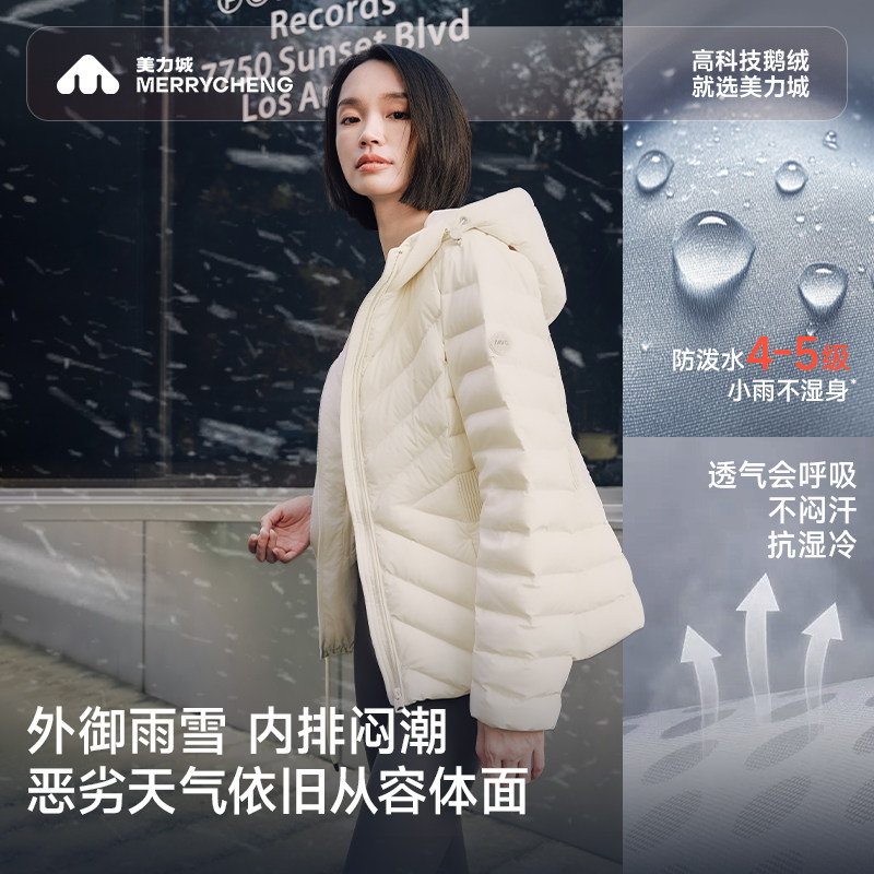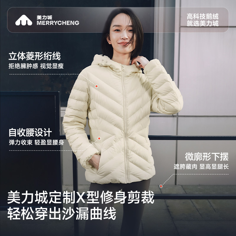 【新品】美力城短款羽绒服自收纳2025年早冬轻薄收腰鹅绒服女079