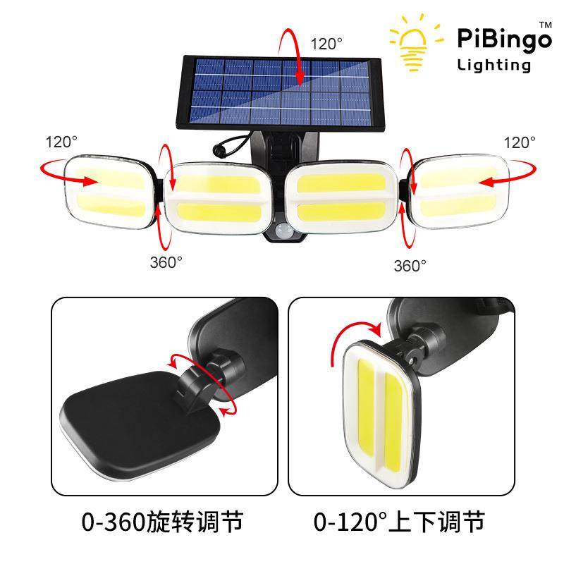 升级新款四头大功率太阳能墙壁灯多角度调节人体感应路灯庭院灯