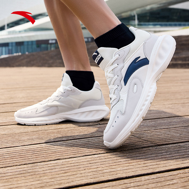 安踏星云丨轻质软底皮面加绒跑步鞋男士缓震通勤男鞋运动休闲鞋