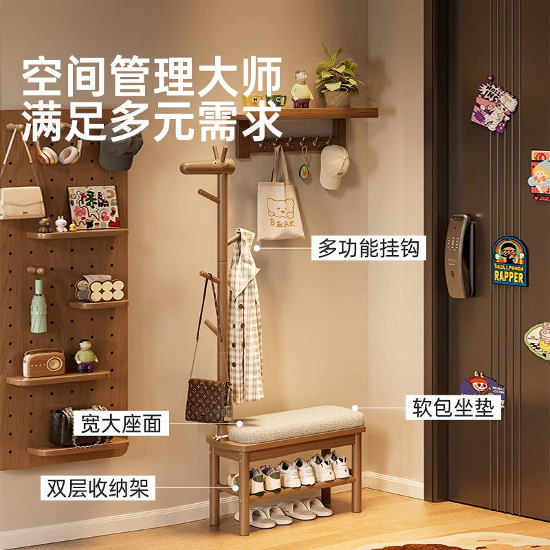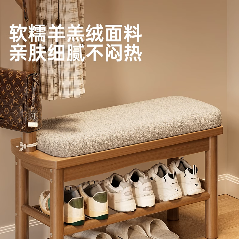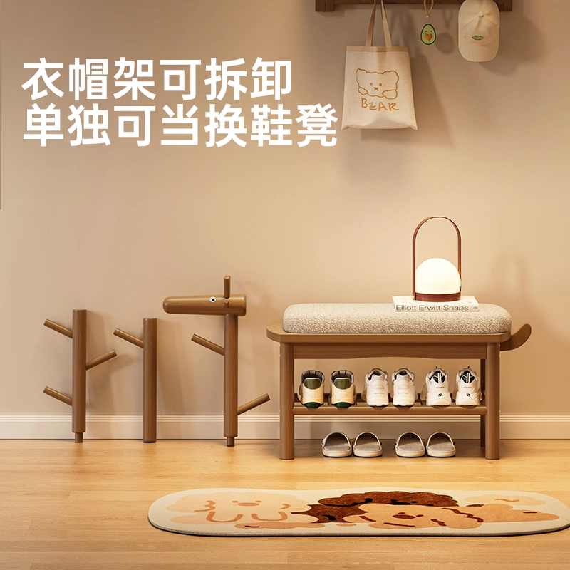 实木小鹿换鞋凳衣帽架一体家用入户玄关门口挂衣架可坐鞋柜穿鞋凳
