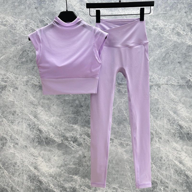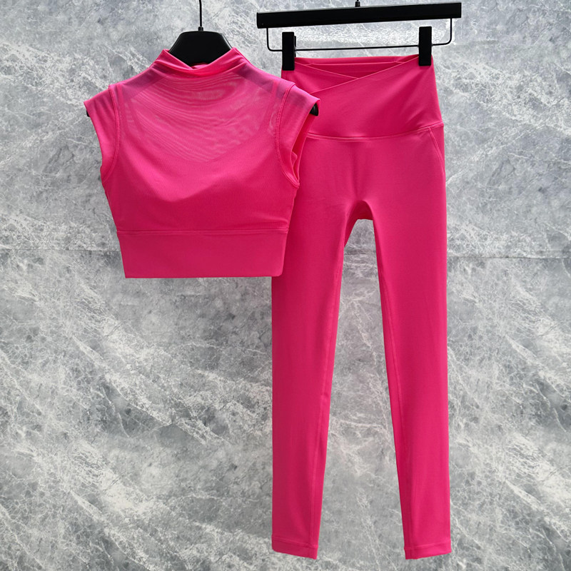 瑜伽服带胸垫普拉提运动短袖上衣跑步训练健身裤女套装夏薄款速干