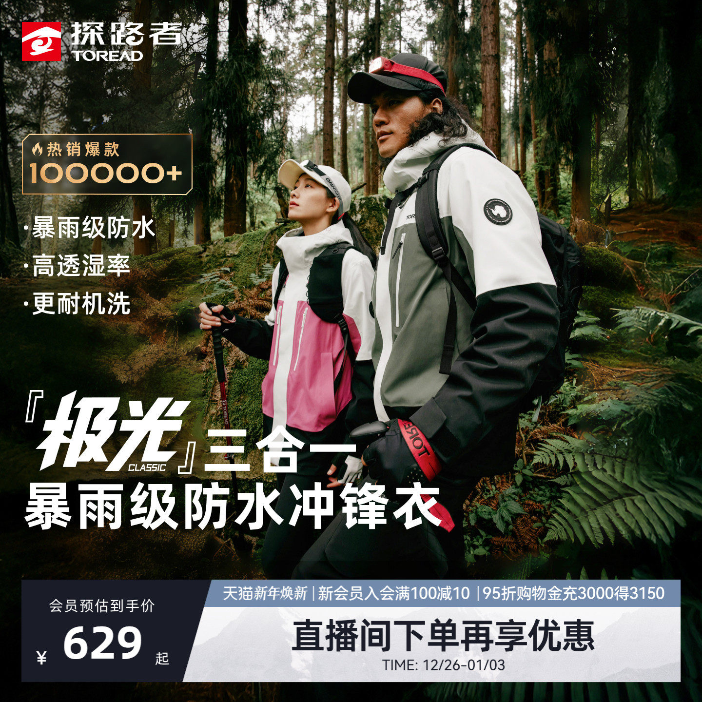 【极光Classic】探路者冲锋衣女冬季户外徒步登山三合一外套男