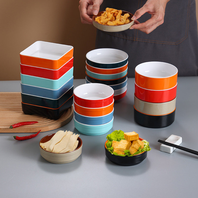 浏阳蒸菜馆商用菜碟密胺快餐食堂小碗菜专用创意餐具火锅调料碗