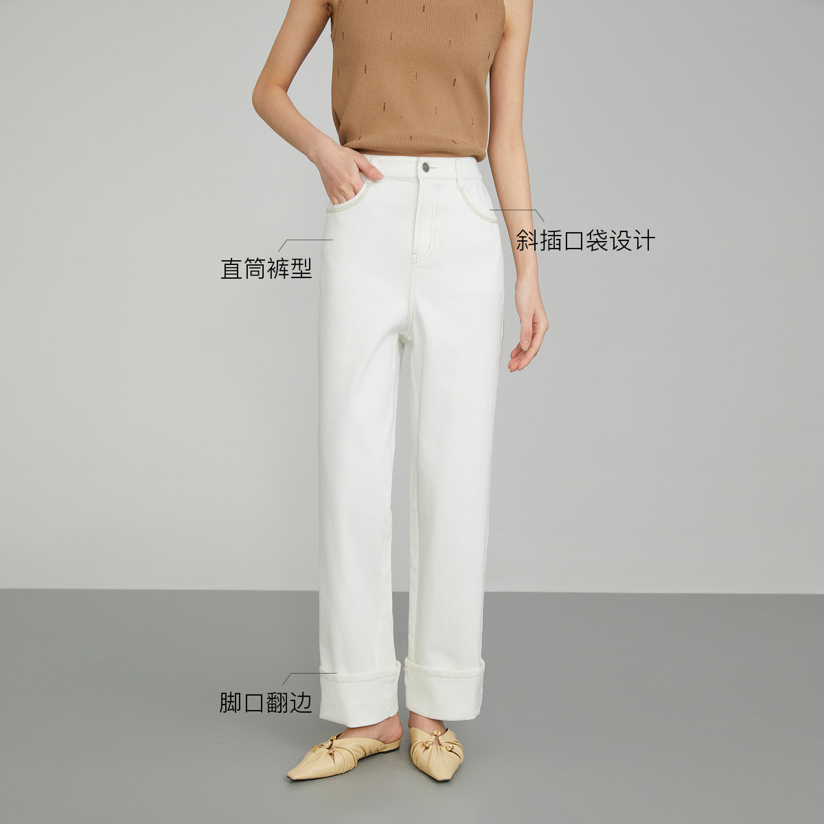 森柔牛仔|商场同款森马牛仔裤女翻边长裤2025秋季新款宽松阔腿裤