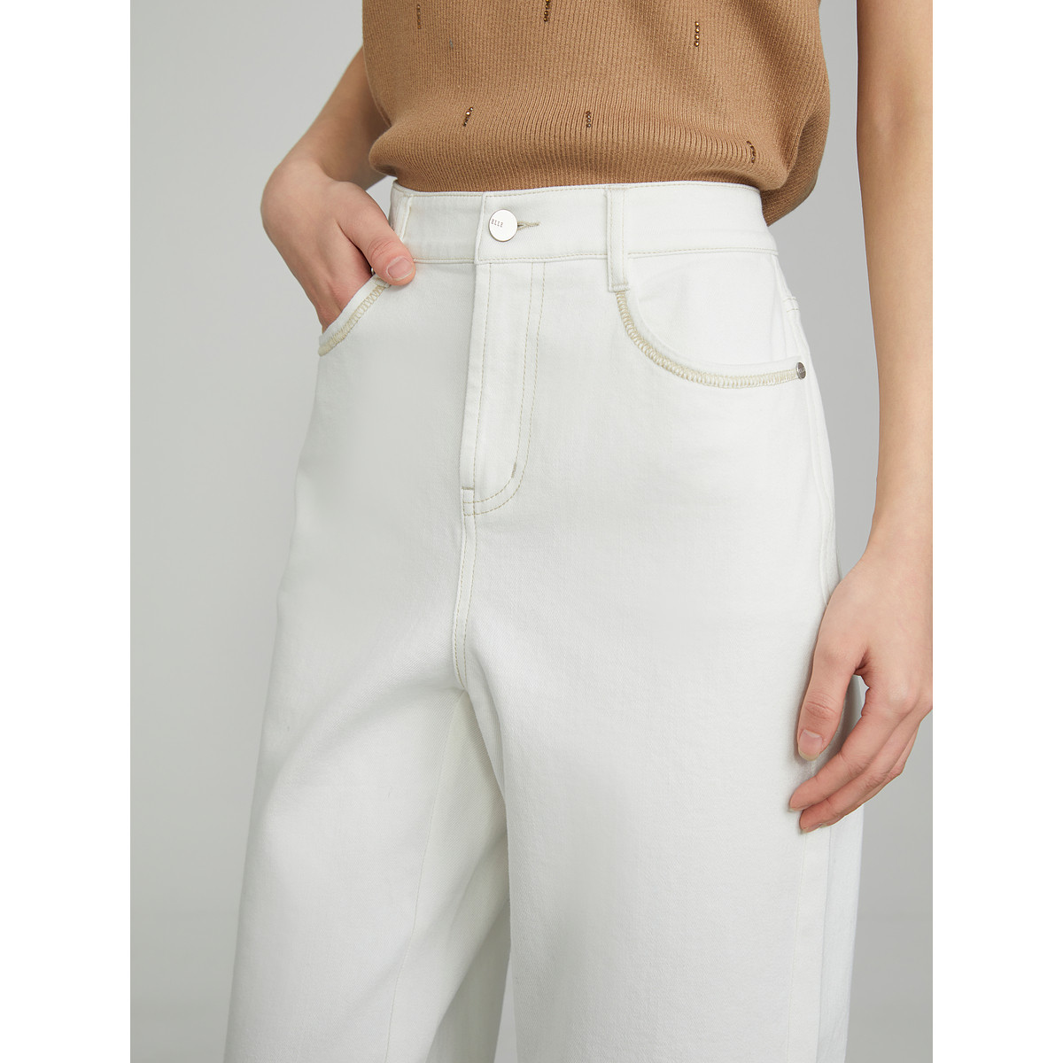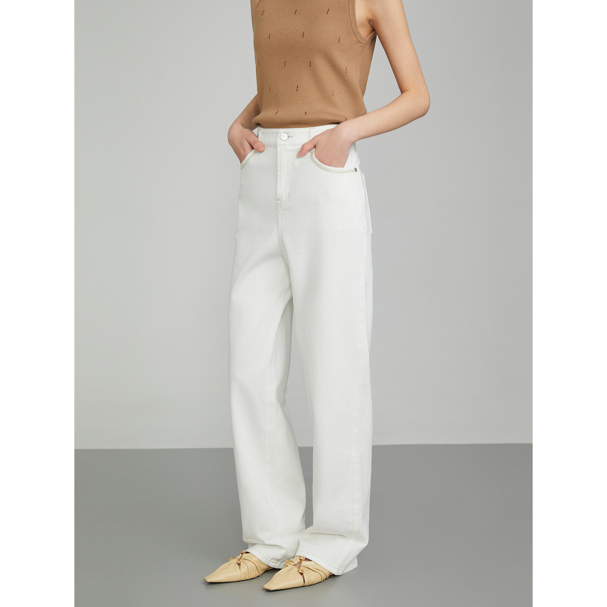 森柔牛仔|森马阔腿牛仔裤女2025秋冬白色牛仔裤简约女士高腰裤子