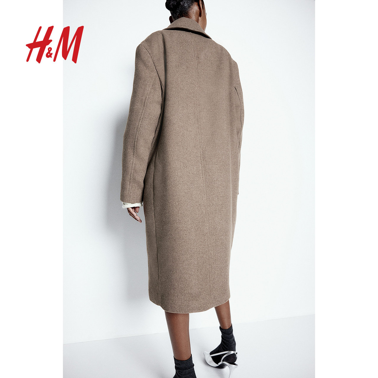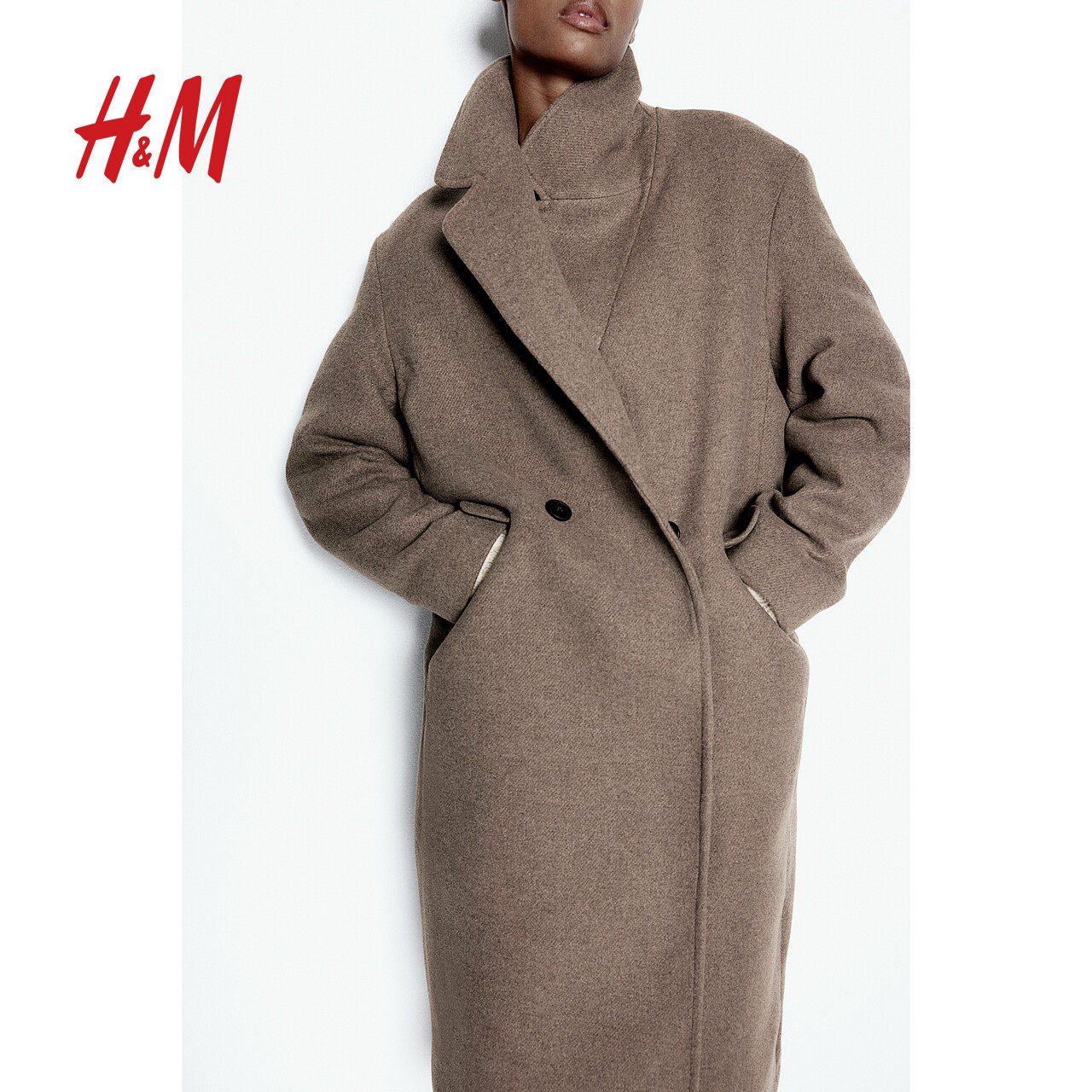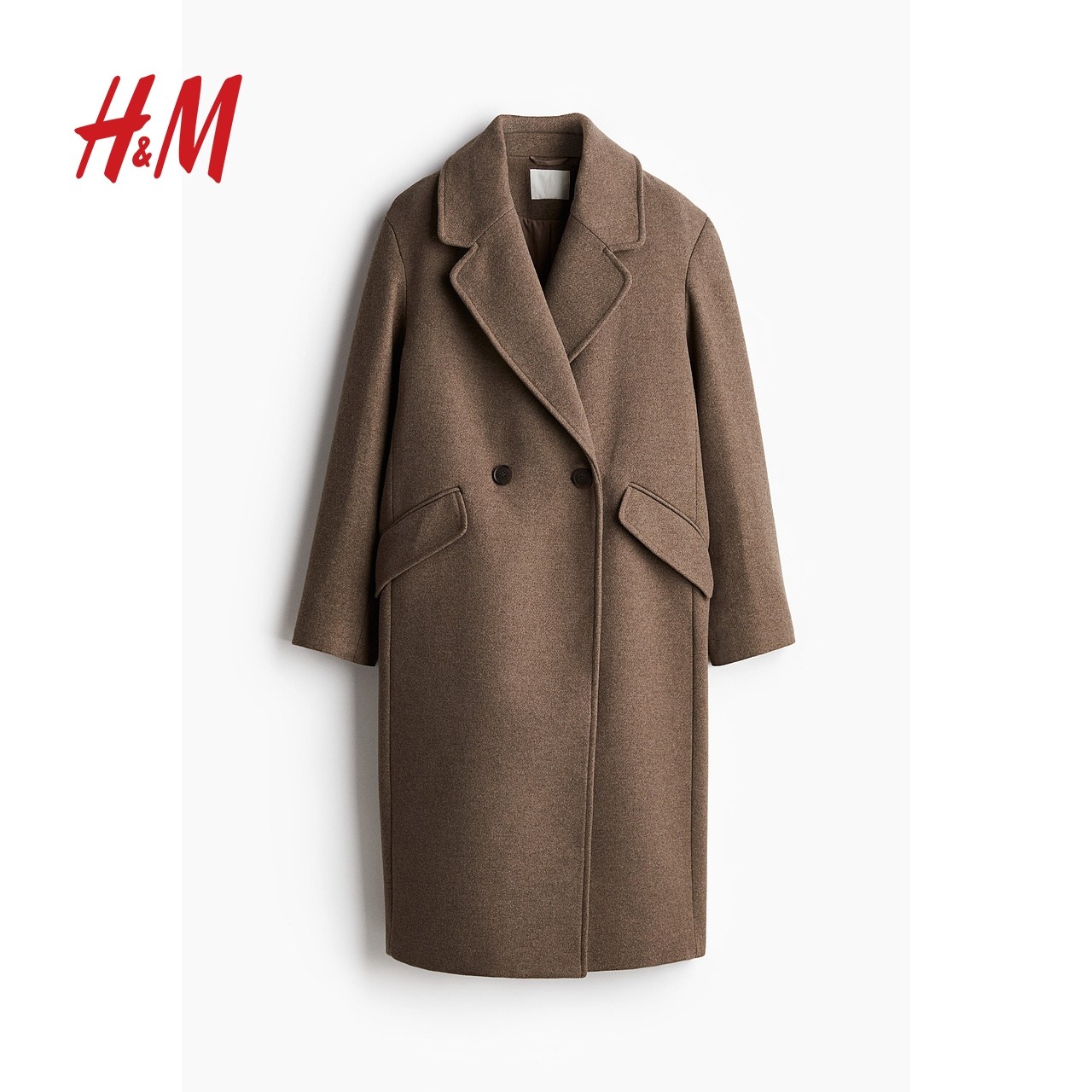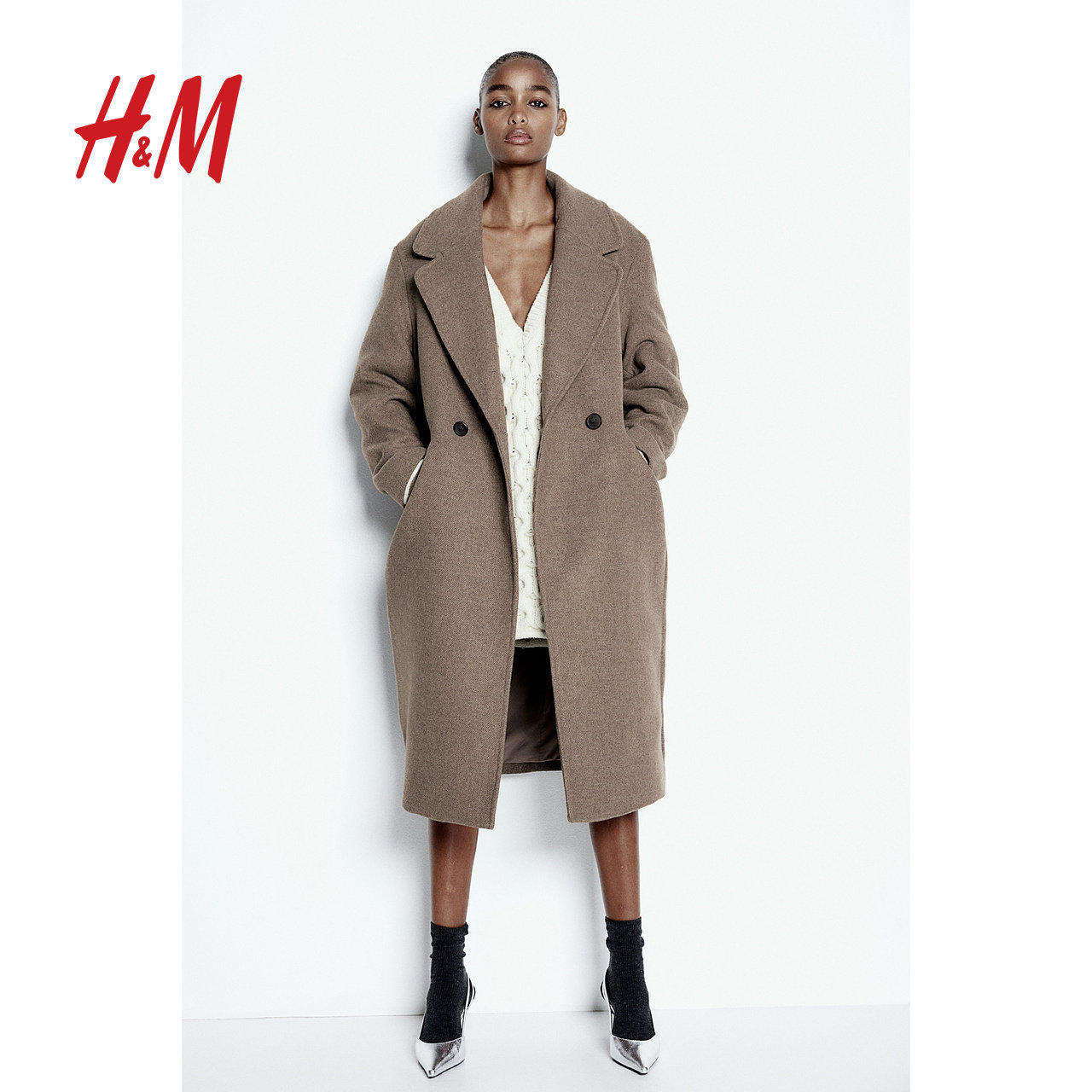 HM女装毛呢外套冬季双排扣平驳领纽扣前襟大衣1170404